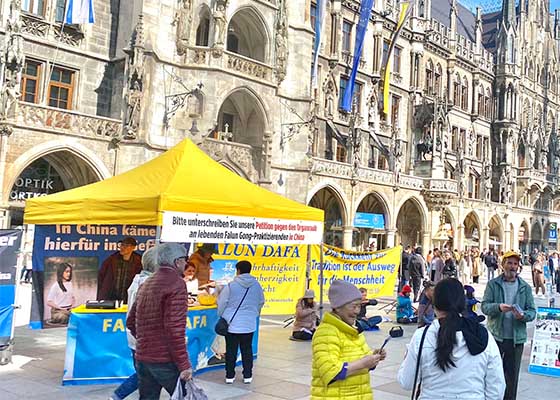- 慕尼黑学员市中心弘法 民众称赞真善忍- 德国巴伐利亚法轮功学员每周周末都在首府慕尼黑举办活动。学员向当地人们和来自世界各地的游客们,展示了法轮功的美好。