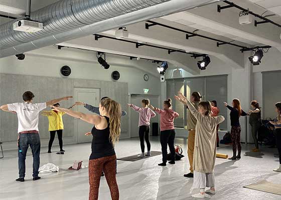- 芬兰瑜伽节上 人们学炼法轮功- 三月二日至三日,芬兰法轮功学员应邀参加了赫尔辛基的瑜伽节活动。学员们展示了舒缓优美的法轮功功法,吸引了很多人驻足观看。