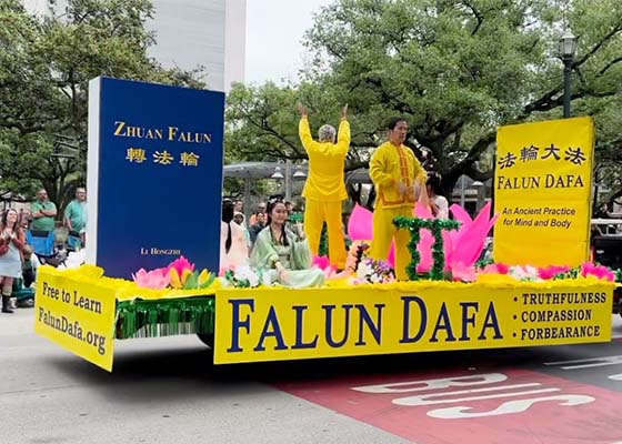 三月十六日,休斯顿法轮功学员参加了当地的圣帕特里克节大游行。法轮功队伍中有功法展示、花车、腰鼓队及琵琶等表演,现场观众说:美国欢迎法轮功。