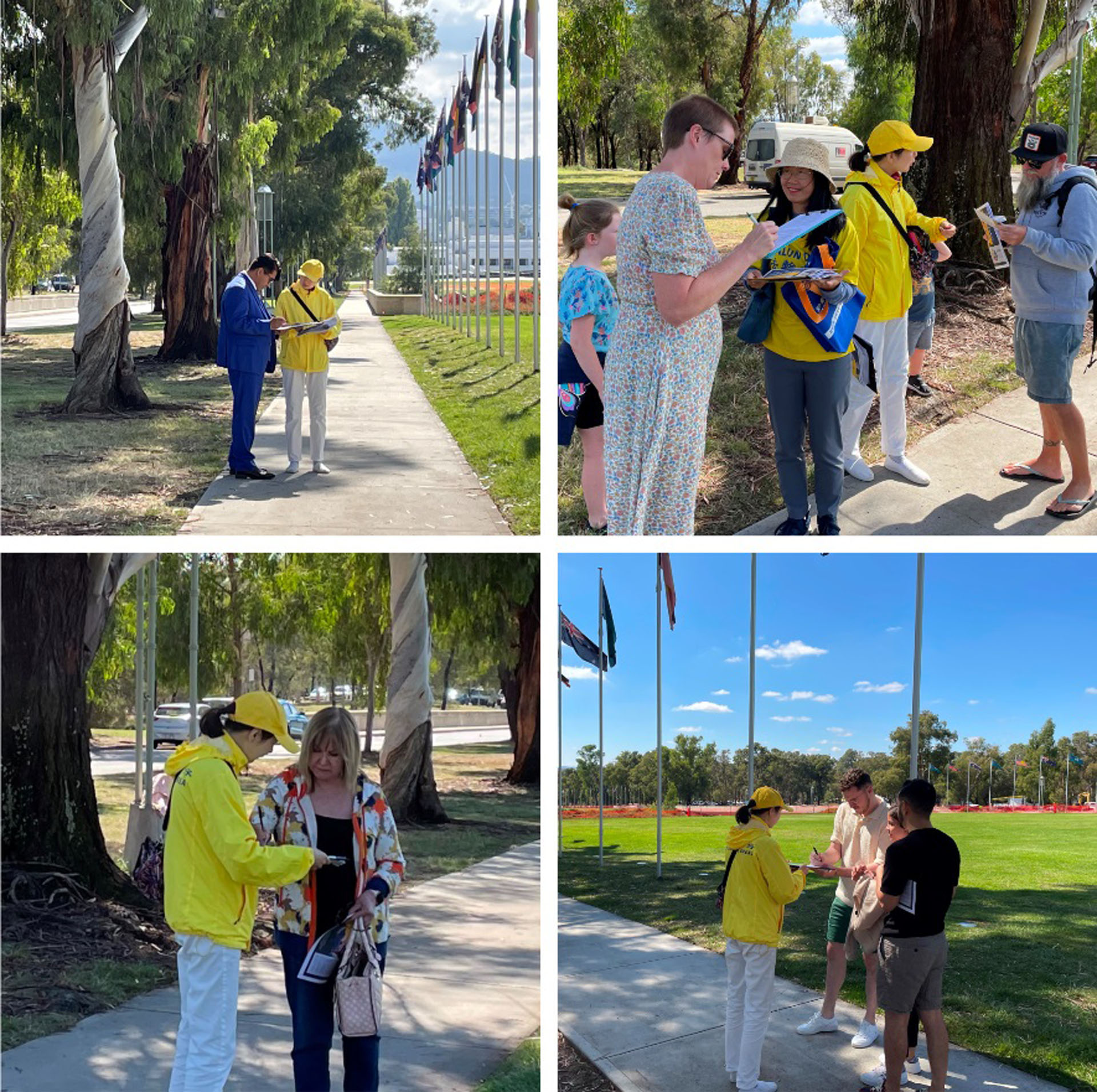 ![]() 图1~2:二零二四年三月二十七日,澳洲部分法轮功学员在首都堪培拉国会大厦前举行了集会,活动期间过往民众签名支持反迫害。 |