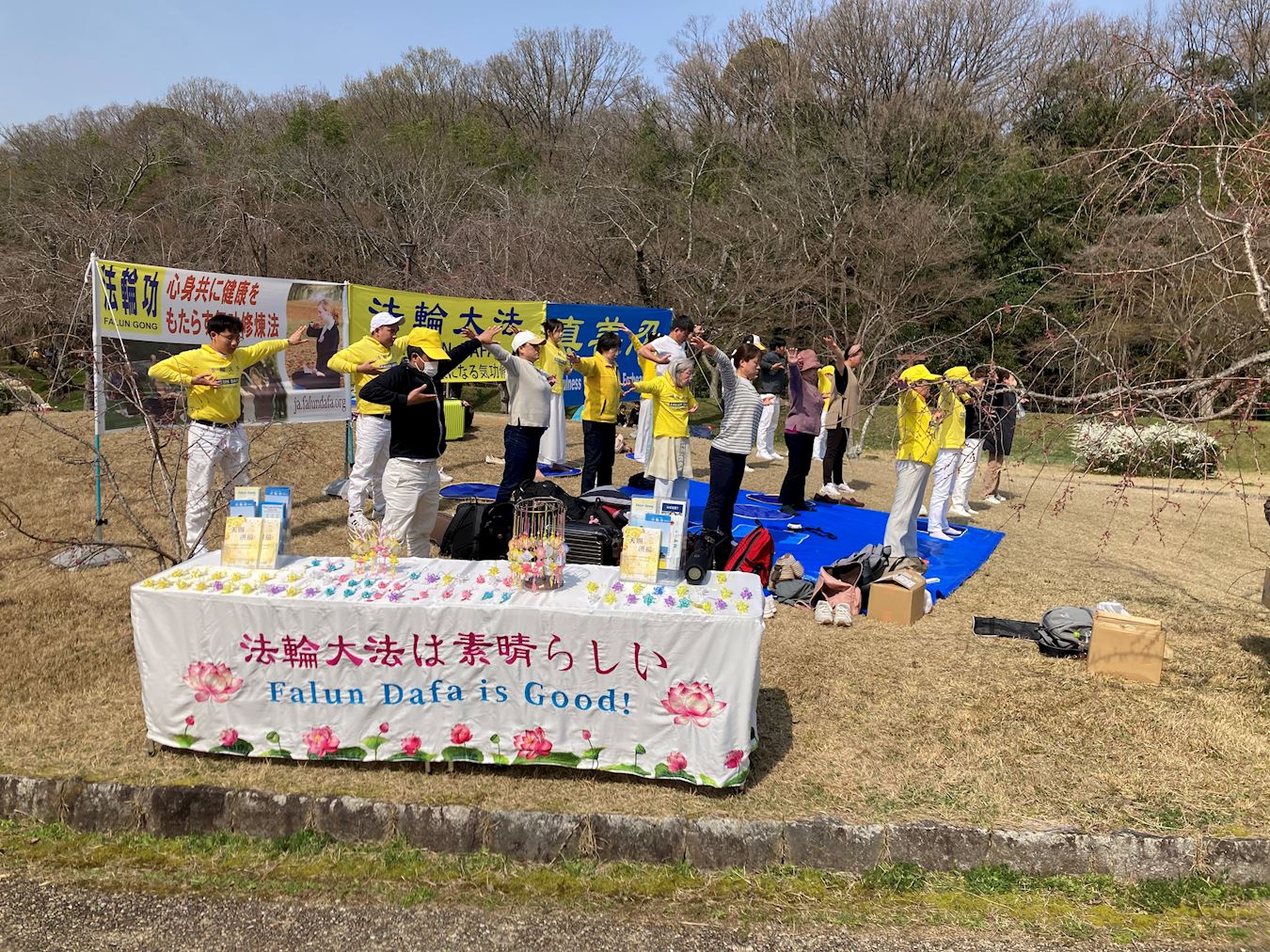 ![]() 图1~3:日本法轮功学员在丰田市水源公园樱花节期间草坪上炼功时的情景。 |