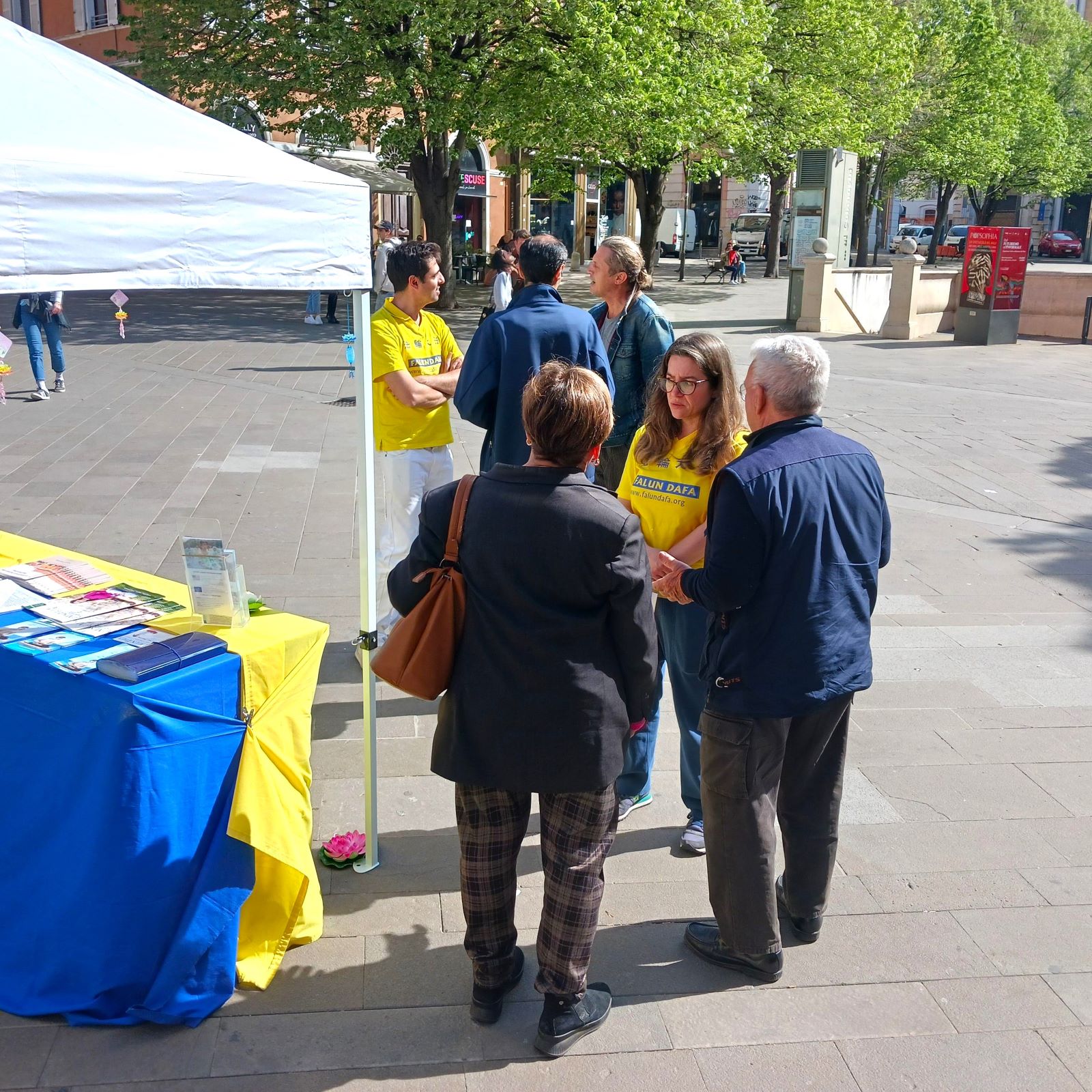 在摊位前,人们从真相展板、传单以及学员的介绍中,得知了迫害的真相,许多人惊讶于长久以来都没有意识到中共对如此和平的人民群体所犯下的暴行,一些人明白真相后,在停止活摘器官的请愿书上签名,支持法轮功反迫害。