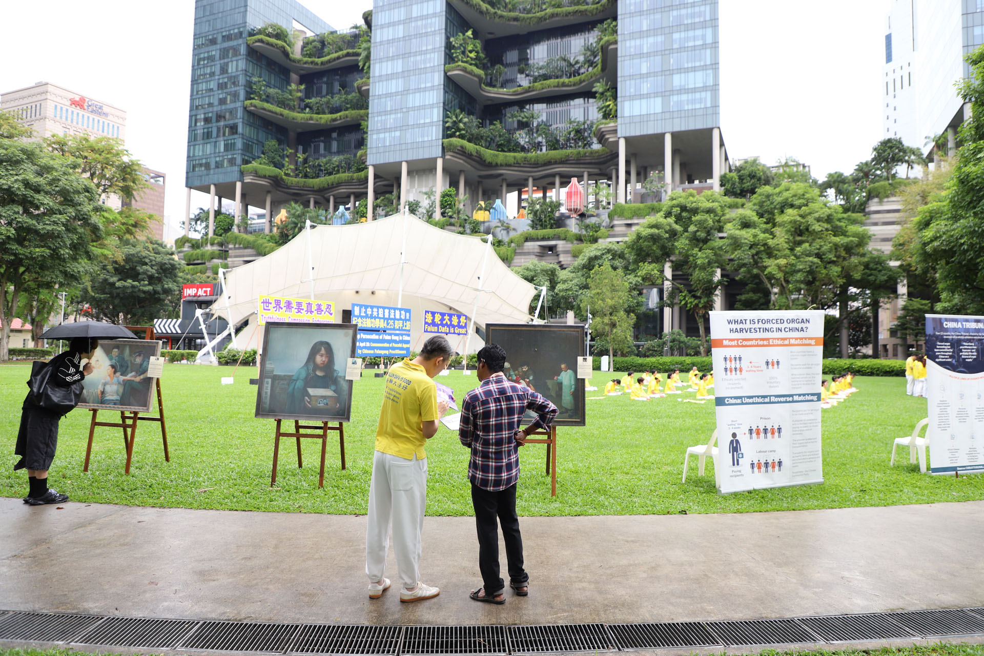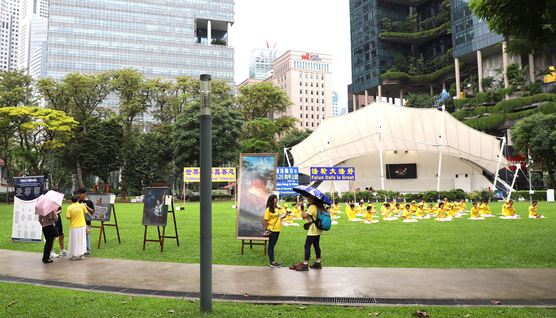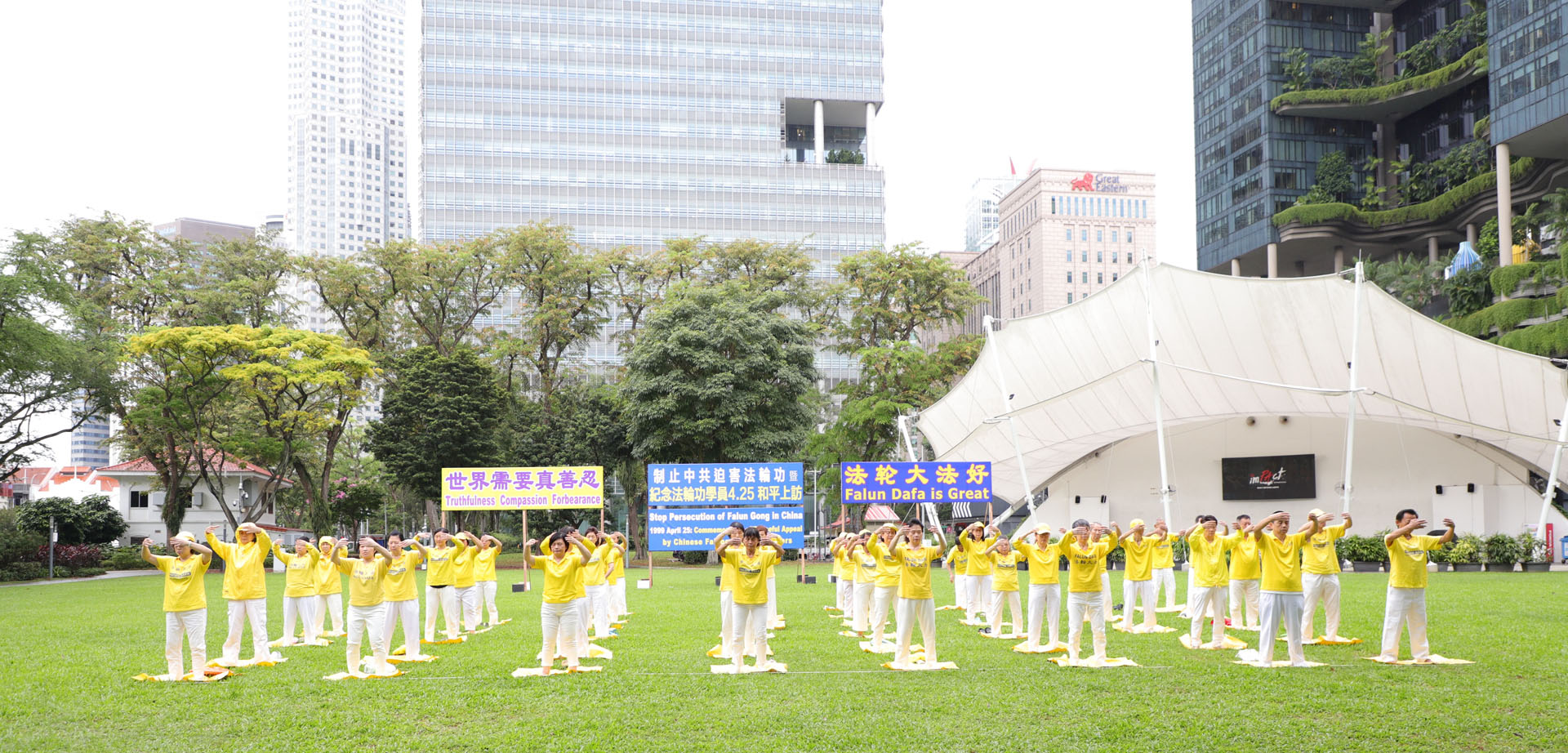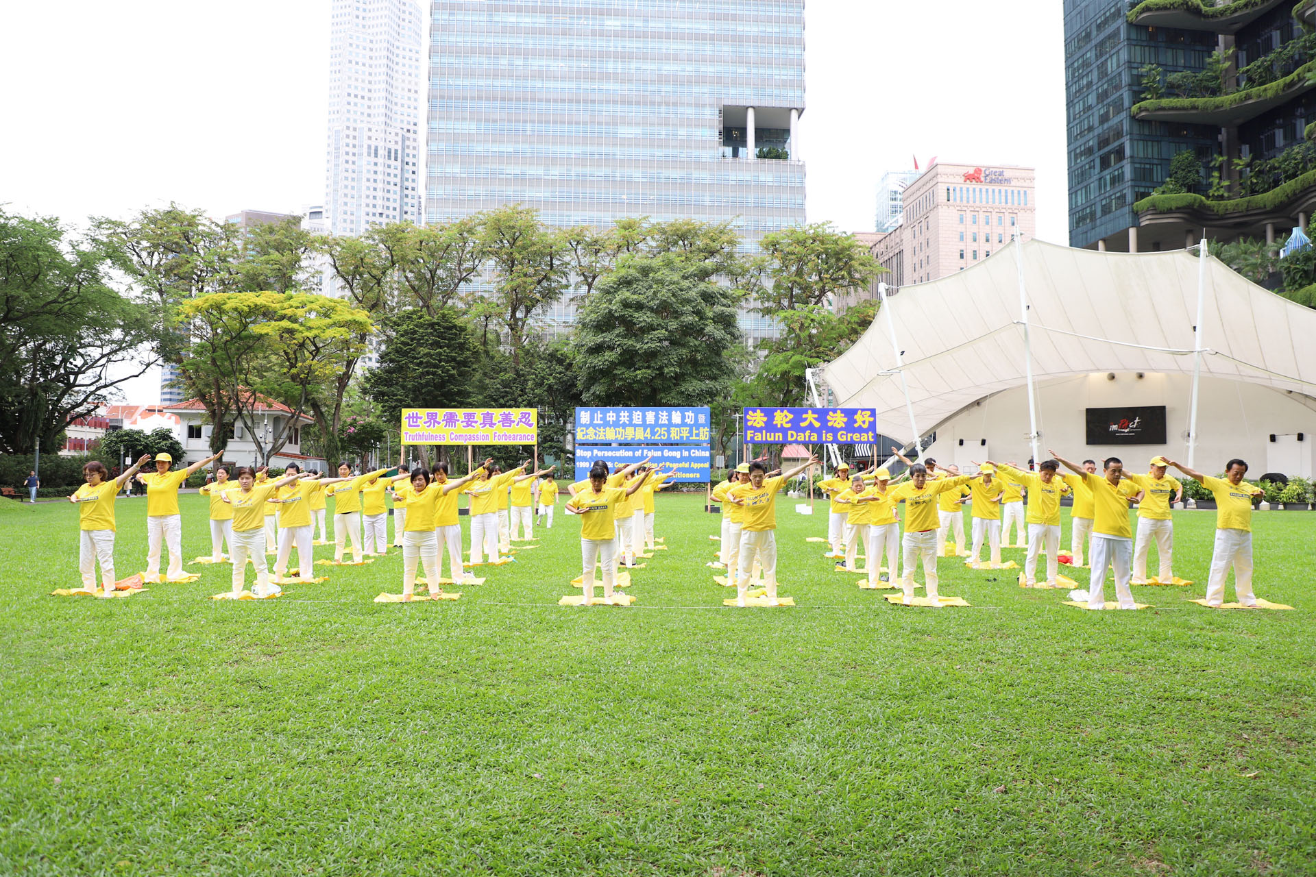 图2~4:二零二四年四月十六日下午,新加坡部份法轮功学员在芳林公园集体炼功。