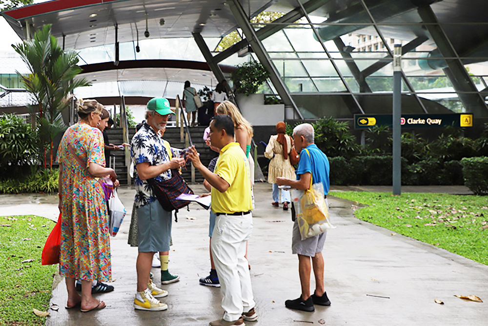 一位在新加坡工作超过七年的印度中年男士,反复追问住家附近的炼功地点。虽然此前从未听说过法轮功,他表示正在寻找能指引自己提升的出路,人生中的一些问题在宗教中找不到答案,近来的一些苦恼也没有解脱之道。学员告诉他炼功点的位置,及如何参加九天班,也分享了自己的修炼经历。
