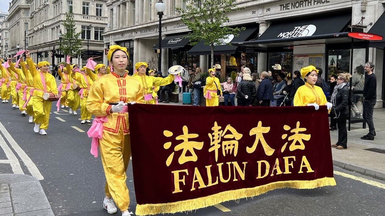 【明慧网二零二四年四月二十二日】(明慧英国记者站报道)二零二四年四月二十日,为纪念一九九九年四月二十五日法轮功学员和平大上访二十五周年(又称:四·二五上访),英国法轮功学员汇聚伦敦,在市中心举行游行。法轮功学员的活动展示法轮功的美好,揭露中共对法轮功长达二十五年的诬陷和残酷迫害,游行经过伦敦市最中心地段的繁华商业干道和唐人街,至唐宁街10号首相府对面,随后举行了新闻发布会。