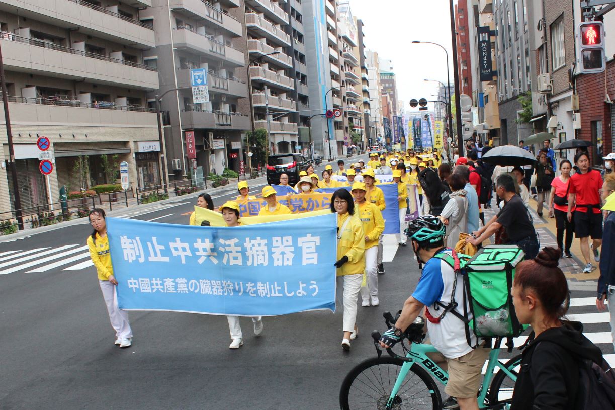 在游行路线附近经营餐饮店的山本先生说以前也看过法轮功学员的游行。他理解并支持反迫害活动。听闻在中国大陆无法举行同样的反迫害活动后,山本先生愤慨地表示:“不能自由发声的中国(中共)才不可理喻。”他并为中国的法轮功学员们加油。