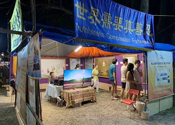 四月十九日至二十一日,塞班岛在加拉班钓鱼台蓝天碧海旁,举行庆祝第四十三届火树艺术节的活动。塞班岛法轮功学员应邀参加了盛会。