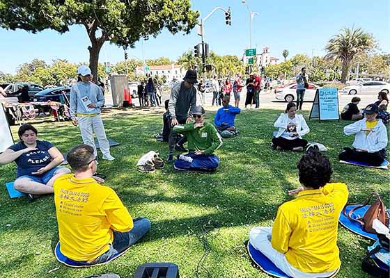 四月二十一日,美国加州圣地亚哥的年度地球日(San Diego Earth Day Fair)庆祝活动在巴博亚景点公园举行,主办方邀请法轮功学员到现场教功。