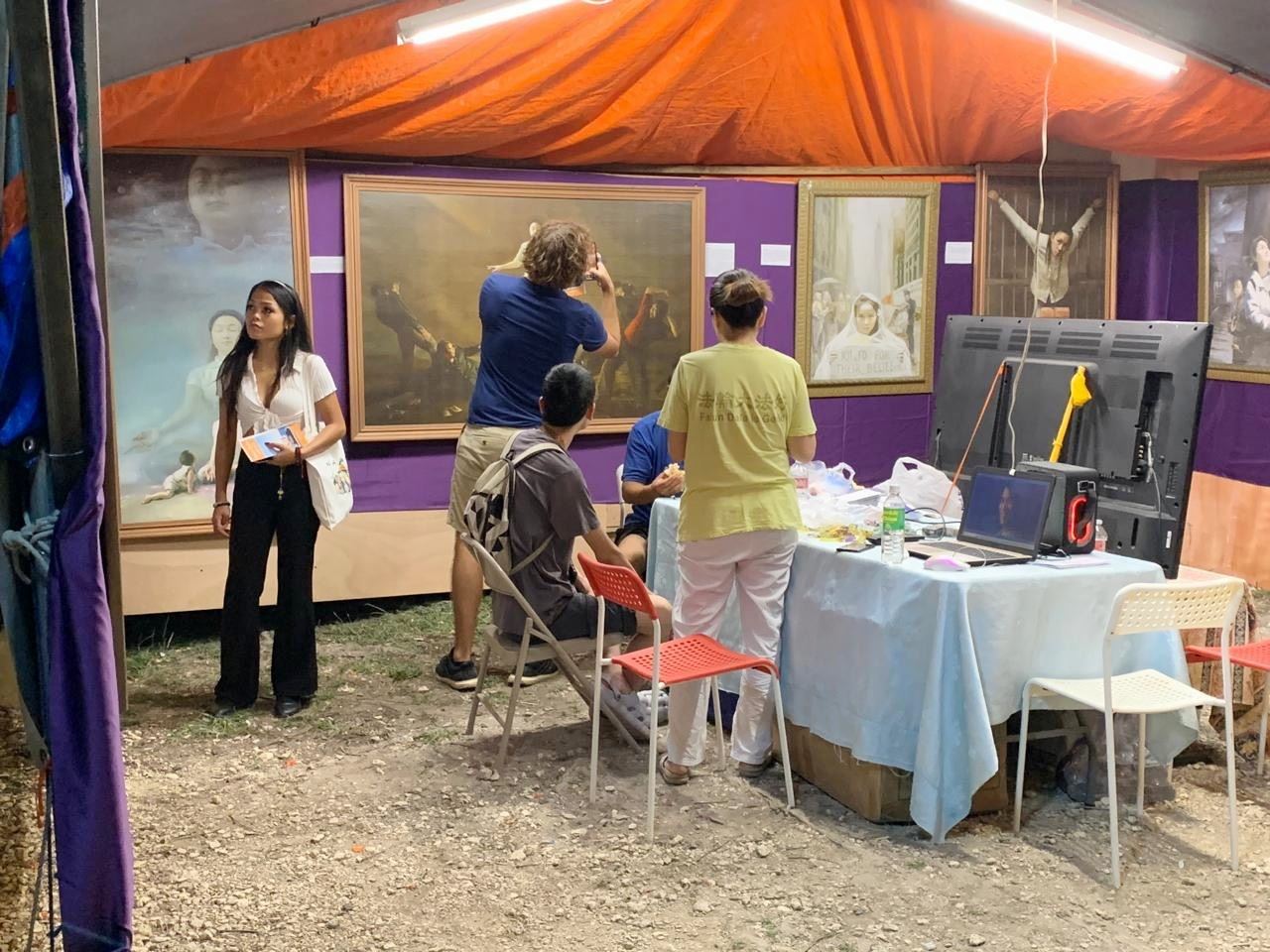 在活动中,法轮大法的展位很是醒目,首先映入眼帘的是展现法轮大法美好与真相的“真善忍美展”,充满了艺术气息和精神价值,有不少市民驻足欣赏,并拍照留念。这些作品是由修炼法轮功的艺术家创作的,画作不但体现了精湛的艺术水平,画家修炼的境界,让他们的作品更能触动人们的心灵,唤醒人们善良的本性和对生命归真的美好向往。