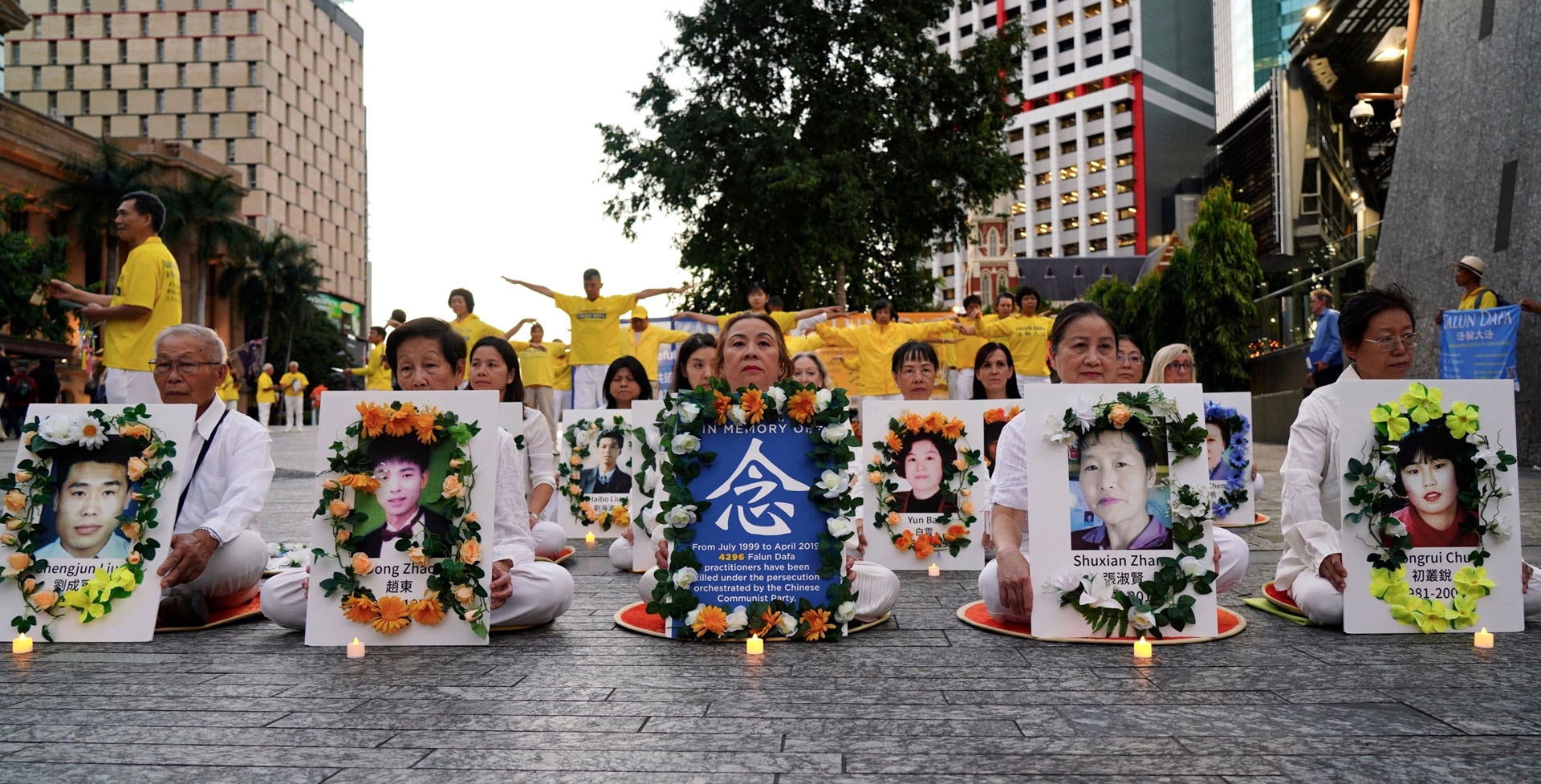 法轮功学员在点点烛光映衬下,和平静坐与炼功的场面,吸引市民和游客前来了解真相。而在了解到法轮功学员没有任何政治目的,只是想要修炼真、善、忍做好人,但却遭受中共残酷迫害、甚至被活摘器官后,人们纷纷签名,谴责中共迫害法轮功。有的人还表示:正义终将战胜邪恶!