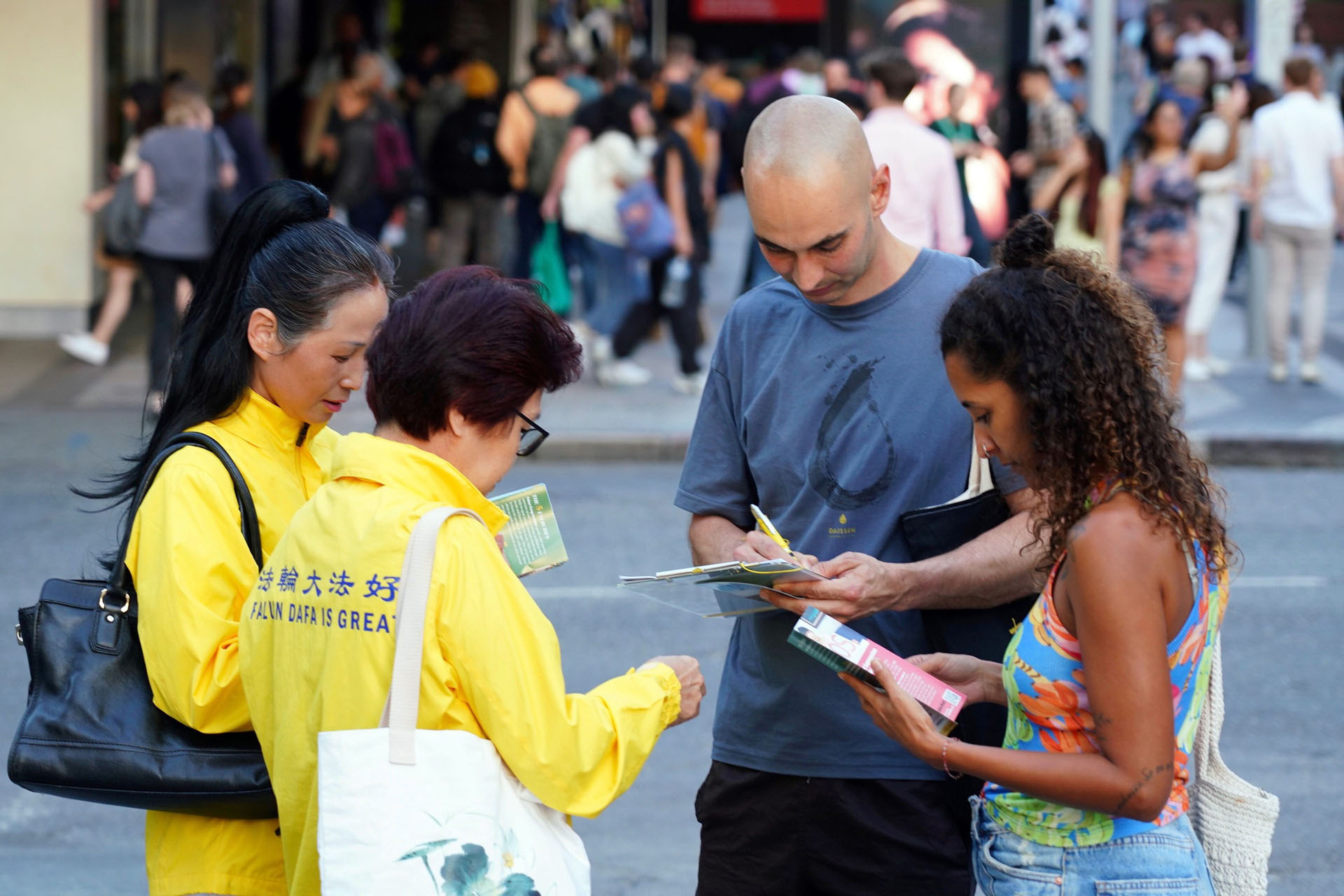 ![]() 图5~8:人们签名支持法轮功学员反迫害。 |