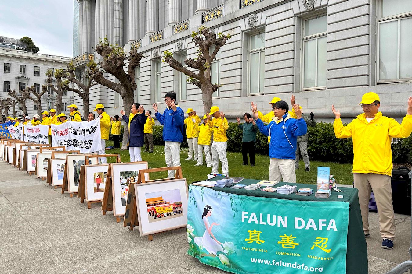 ![]() 图1~4:二零二四年四月二十三日 ,旧金山湾区部分法轮功学员在旧金山市政府大楼前举办真相图片展。 |