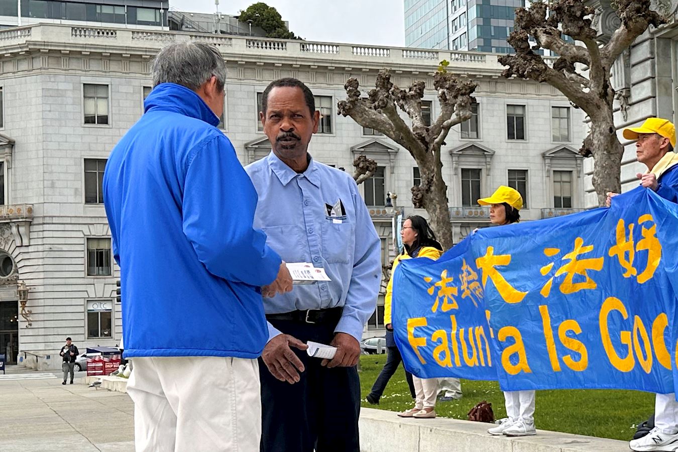 作家琳达·杰克逊(Linda Jackson)表示,自己对法轮功功法很感兴趣,“我经常在旧金山的公园里看到人们练太极拳、炼功,我很钦佩中国人注重身心的健康。随着年龄的增长,我更需要内心的宁静和健康。今天我来到这里,找到了改善身心的方法,我非常感激你们今天在这里举办活动。”