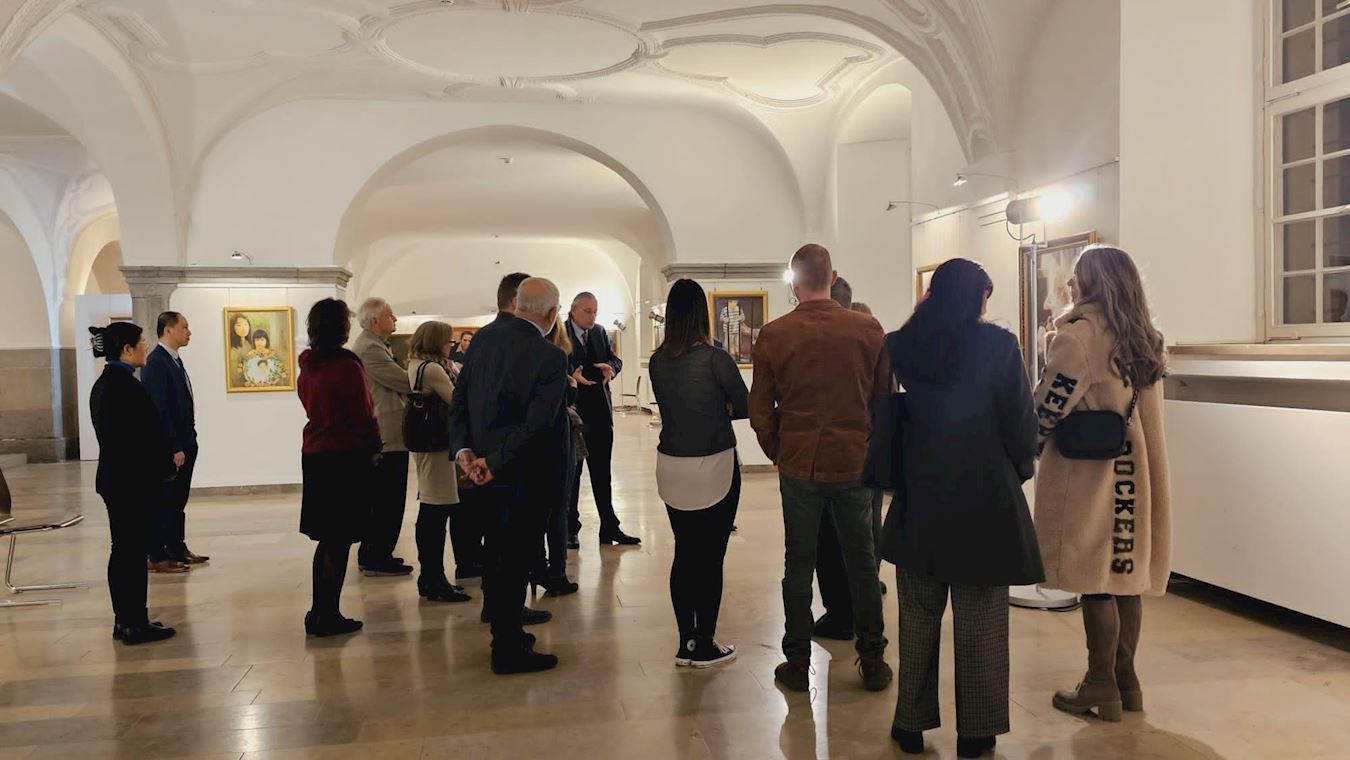 位于阿尔卑斯山北麓的坎普顿市是德国历史最悠久的城市之一,也是阿尔高地区(Allgäu)的政治、行政、商业中心。美展所在地是亲王府邸,它的历史可追溯到公元750年的一座修道院。欧式拱顶下,占地达四百五十平米的大厅更显宽广,洁白的墙面上罗列着美展画作,使整个大厅充满了静穆、庄严的气氛。