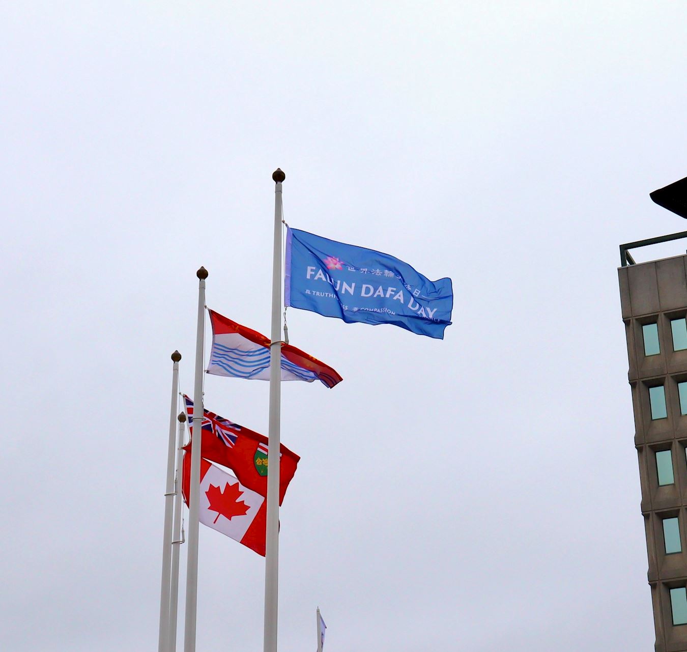 我们升起旗帜,来庆祝法轮大法日,并表彰真、善、忍的价值观。感谢法轮大法向社区传递光明与希望。”