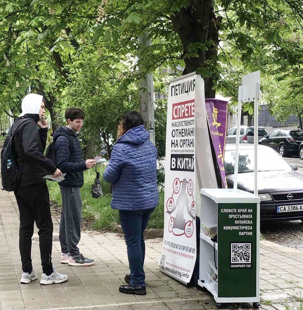 【明慧网二零二四年五月一日】二零二四年四月二十五日,保加利亚法轮功学员在索非亚中使馆前纪念万名法轮功学员和平上访二十五周年,举行弘法、炼功、讲真相活动,呼吁停止迫害法轮功。