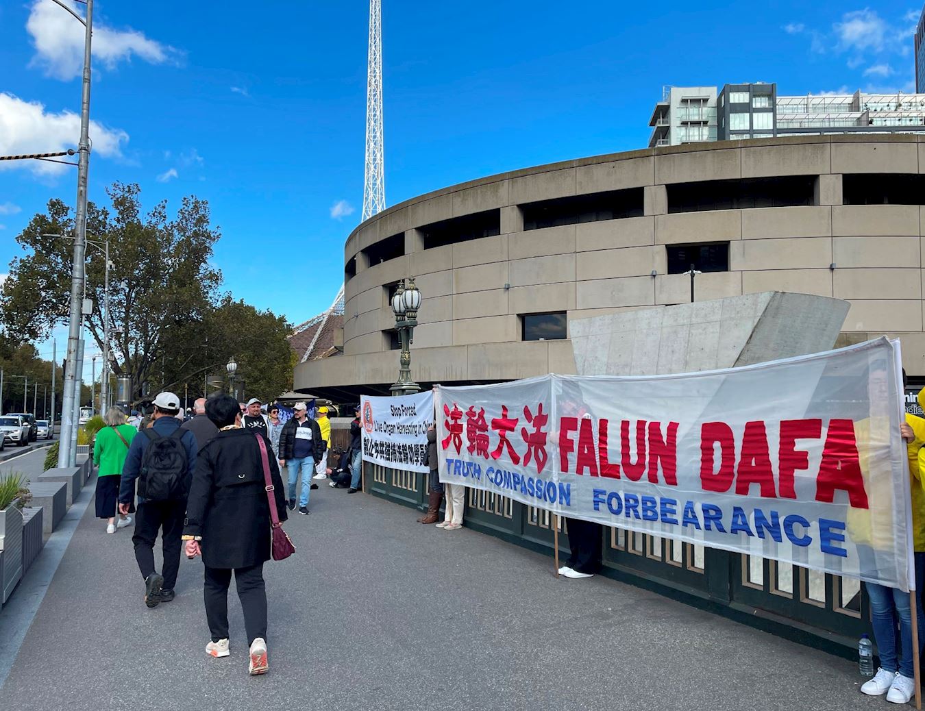 【明慧网二零二四年五月一日】(明慧记者夏纯清墨尔本报道)二零二四年四月二十七日午后,澳洲墨尔本部分法轮功学员在市中心著名景点王子桥(Princes Bridge)举行了真相横幅展活动,纪念“四・二五”北京和平上访二十五周年。