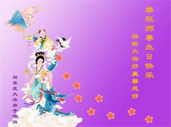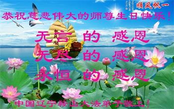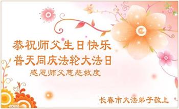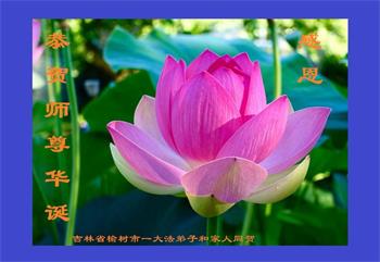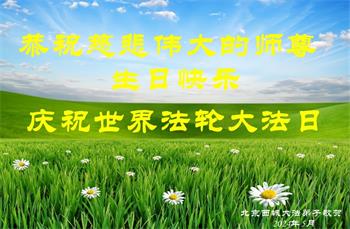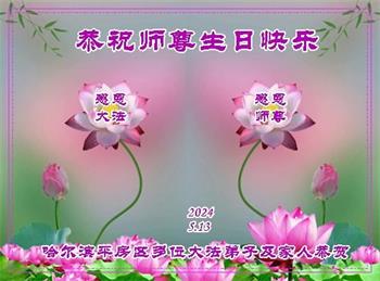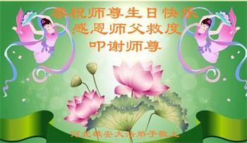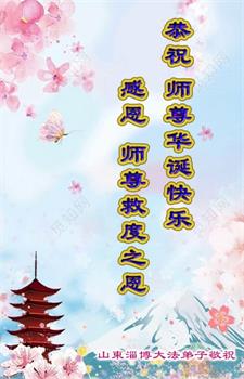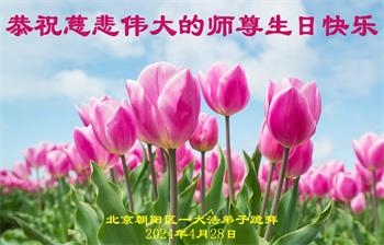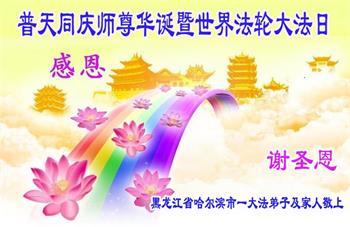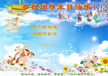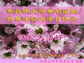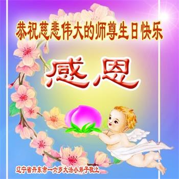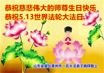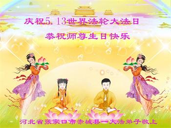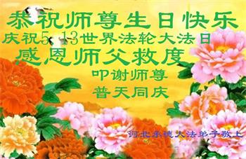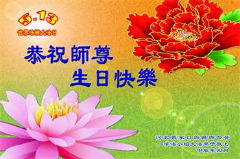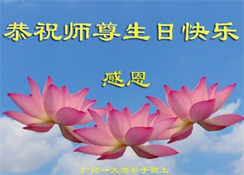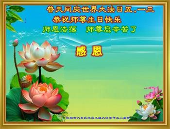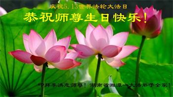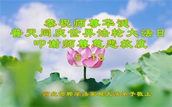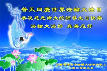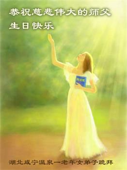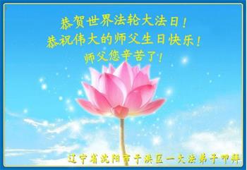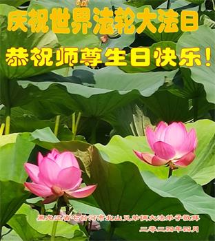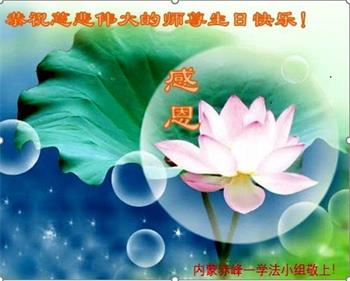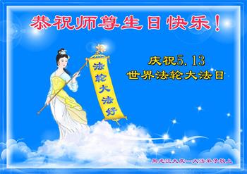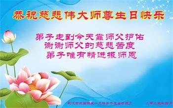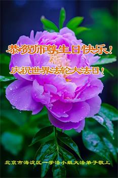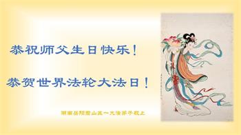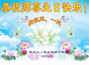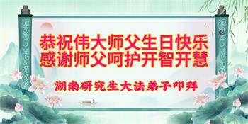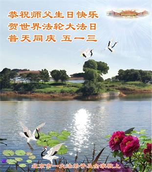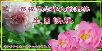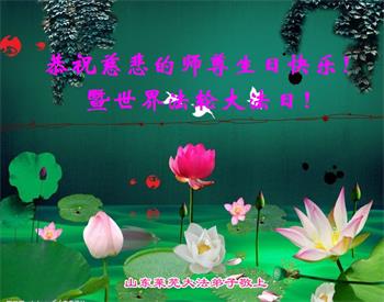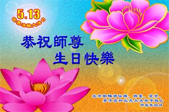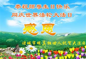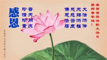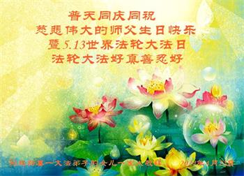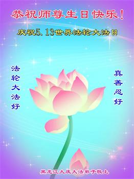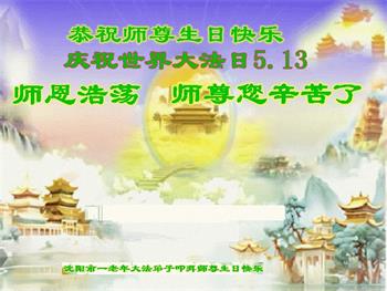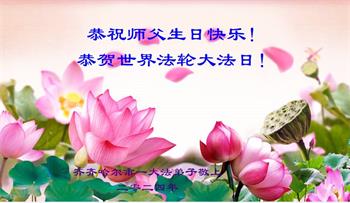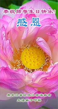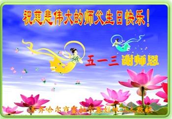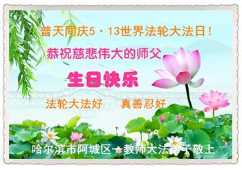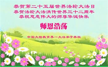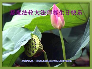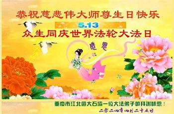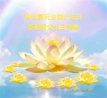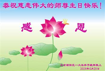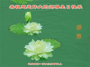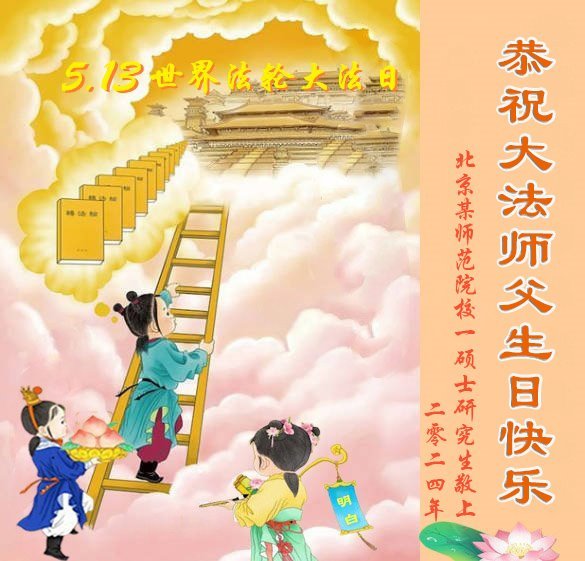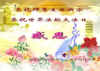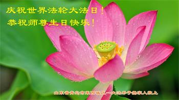 北京市一名硕士研究生说:“我就读于北京某师范院校,是一名即将毕业的硕士研究生。近日我陷入难关后,因为常念‘法轮大法好,真善忍好’,感受到大法赐予我智慧与力量!我深感师父的慈悲苦度。在此我深怀感恩之心,恭贺世界法轮大法日!恭祝大法师父生日快乐!”