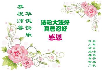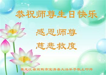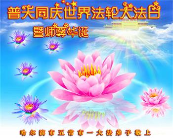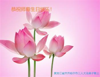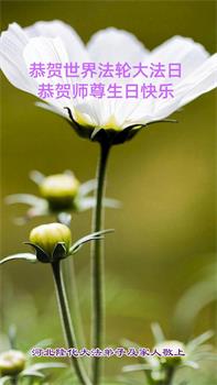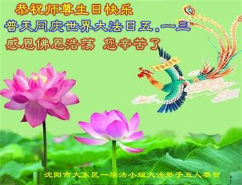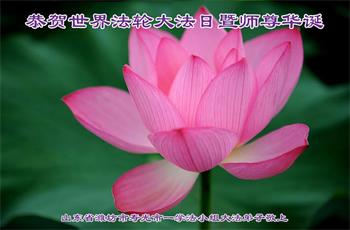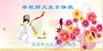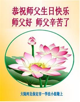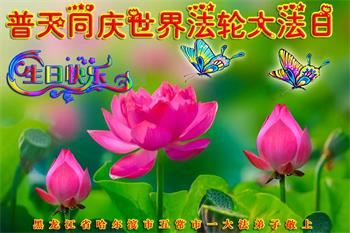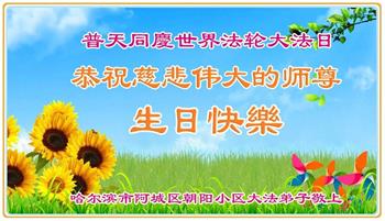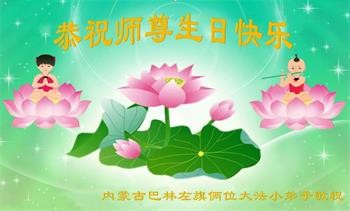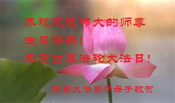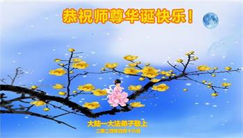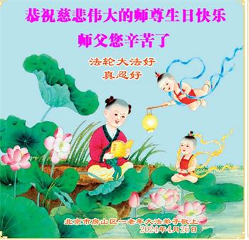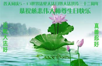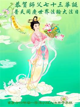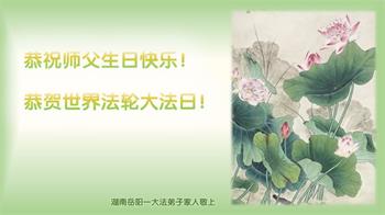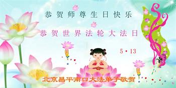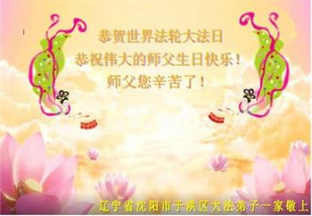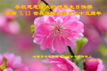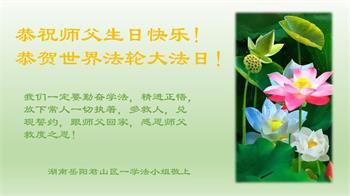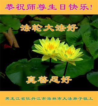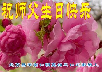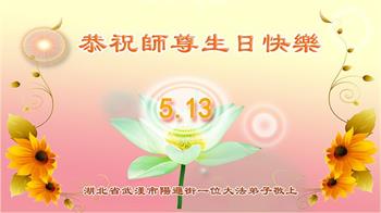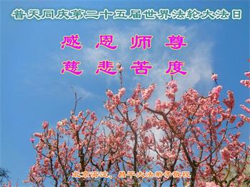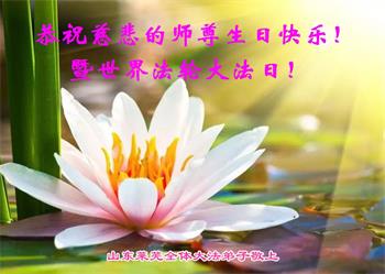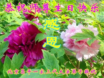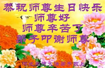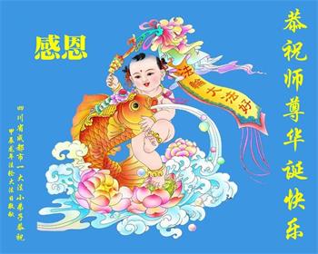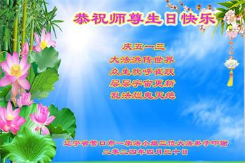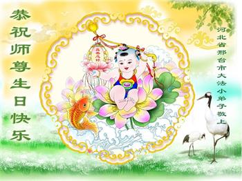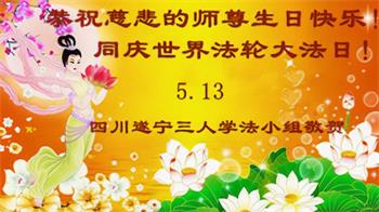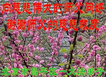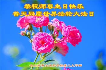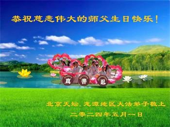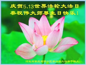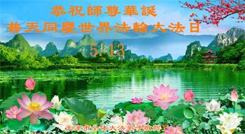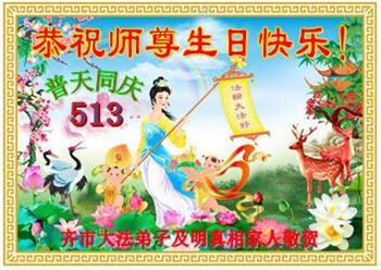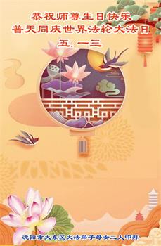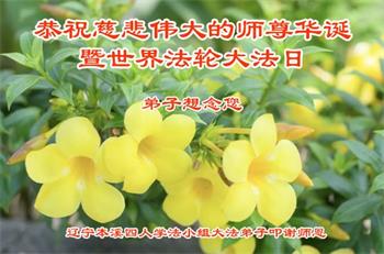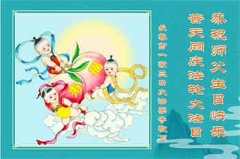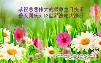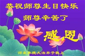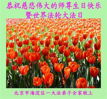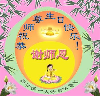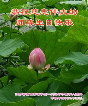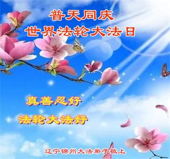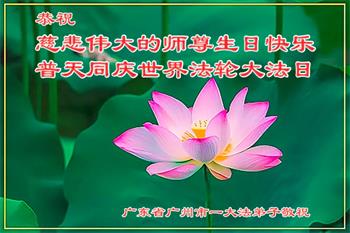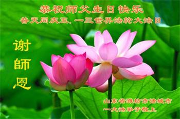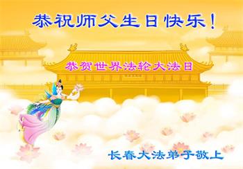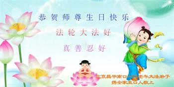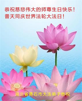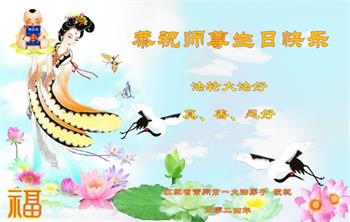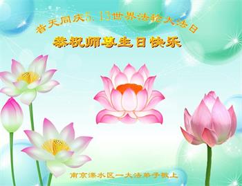 北京市一名硕士研究生说:“我就读于北京某师范院校,是一名即将毕业的硕士研究生。近日我陷入难关后,因为常念‘法轮大法好,真善忍好’,感受到大法赐予我智慧与力量!我深感师父的慈悲苦度。在此我深怀感恩之心,恭贺世界法轮大法日!恭祝大法师父生日快乐!”