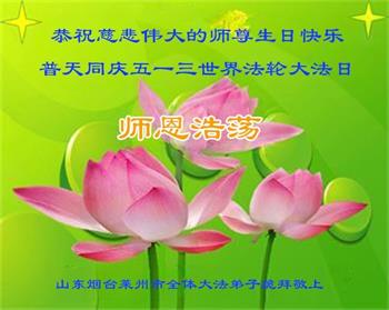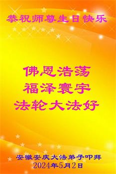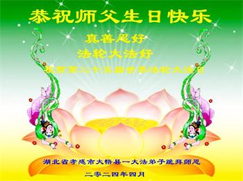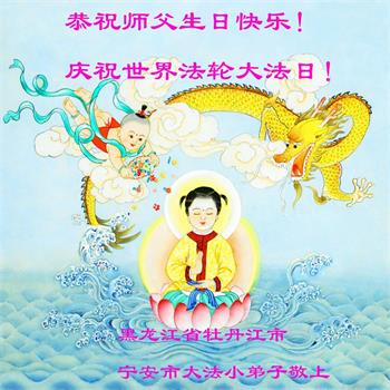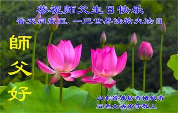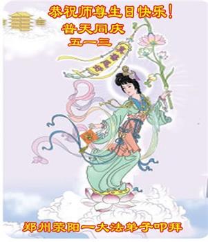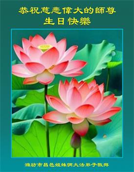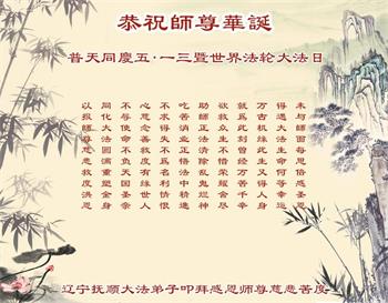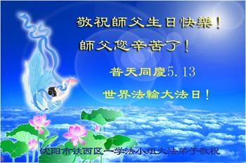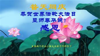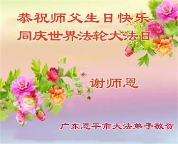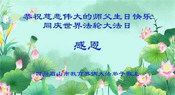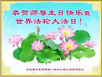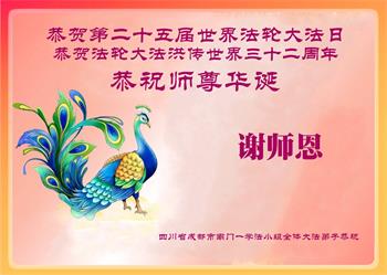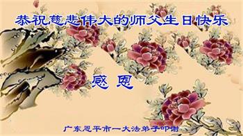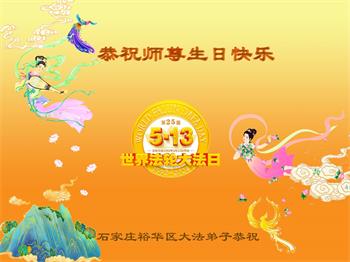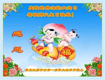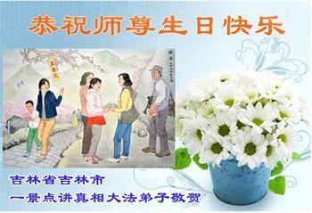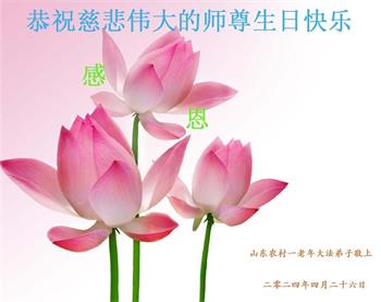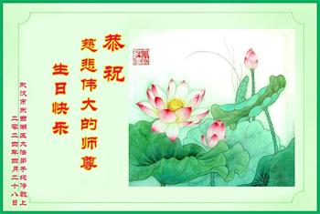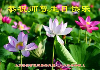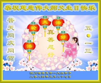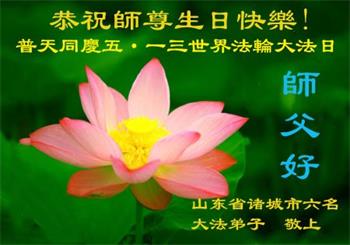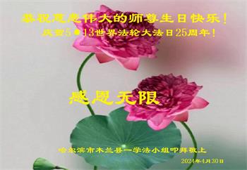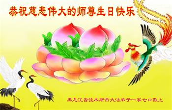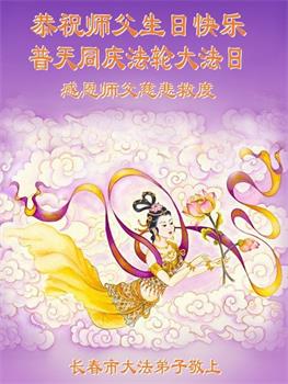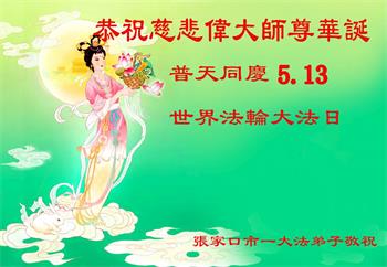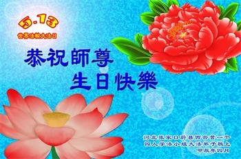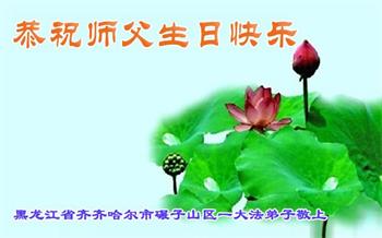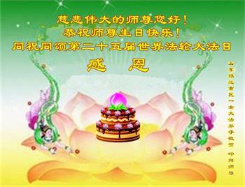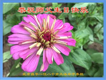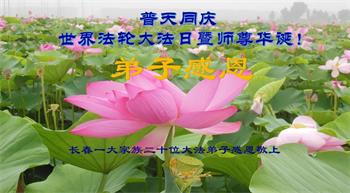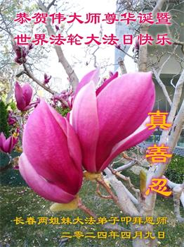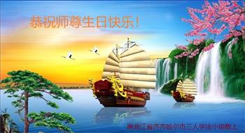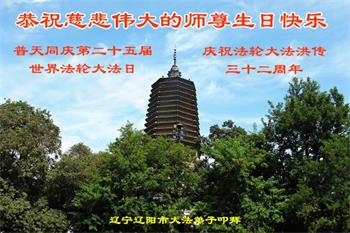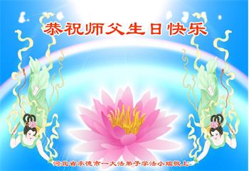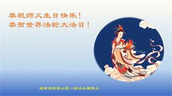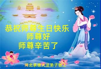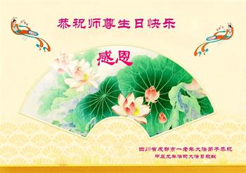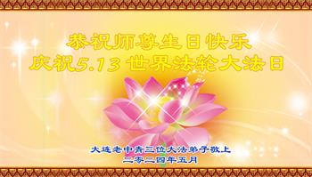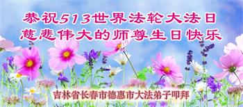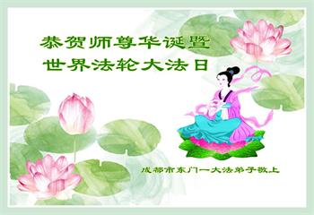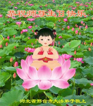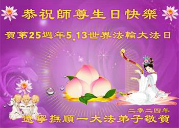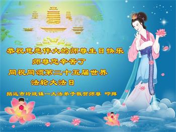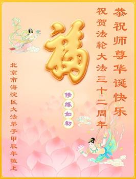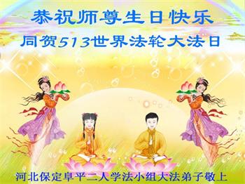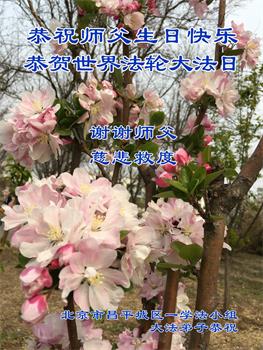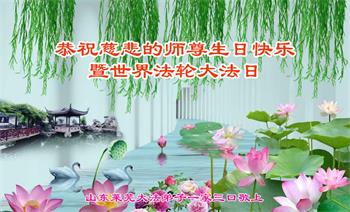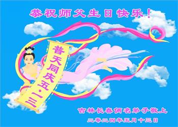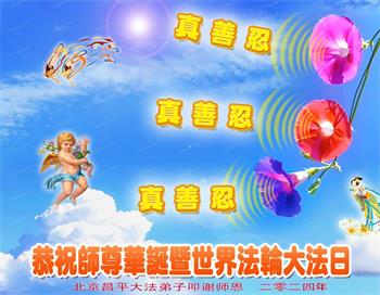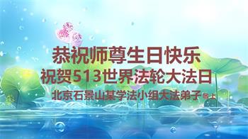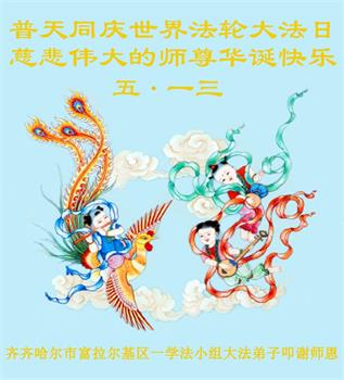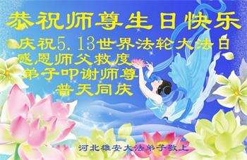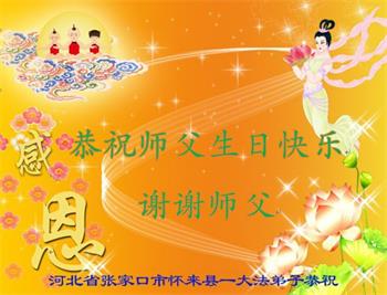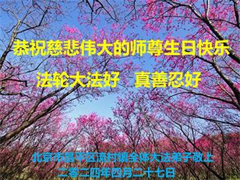 北京市一名硕士研究生说:“我就读于北京某师范院校,是一名即将毕业的硕士研究生。近日我陷入难关后,因为常念‘法轮大法好,真善忍好’,感受到大法赐予我智慧与力量!我深感师父的慈悲苦度。在此我深怀感恩之心,恭贺世界法轮大法日!恭祝大法师父生日快乐!”