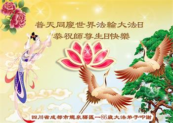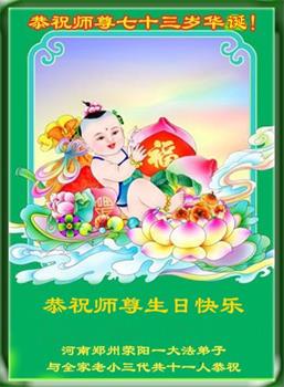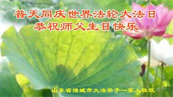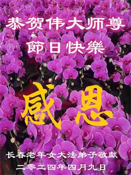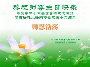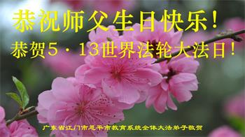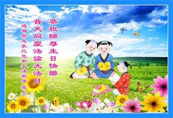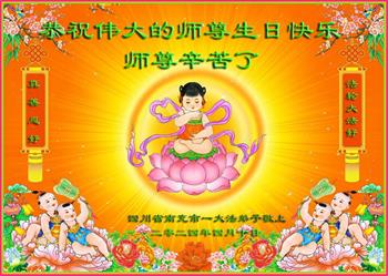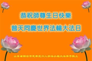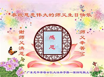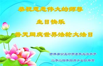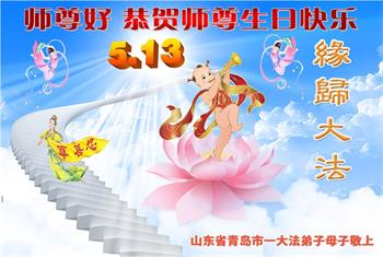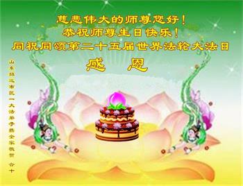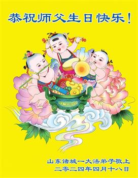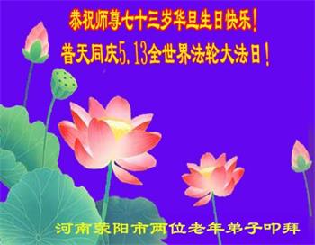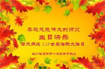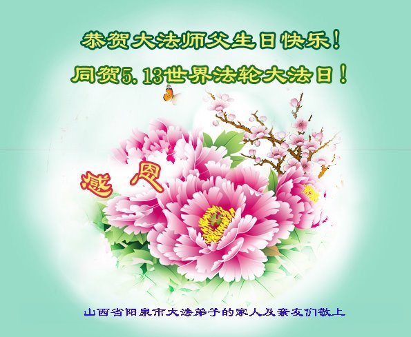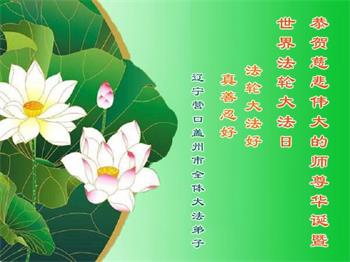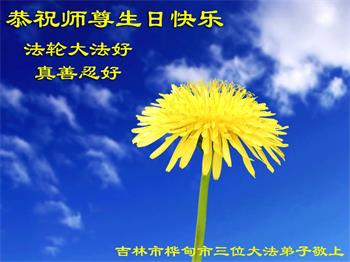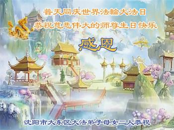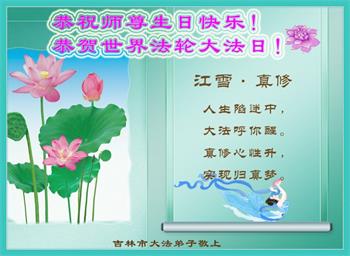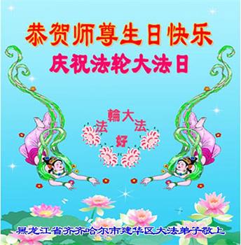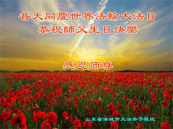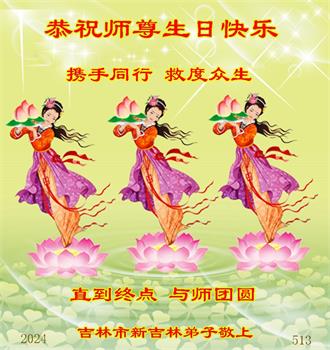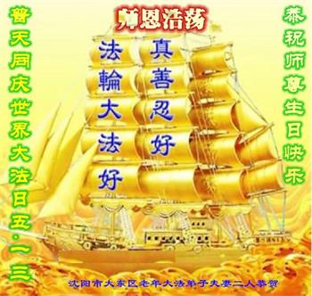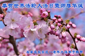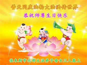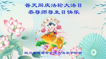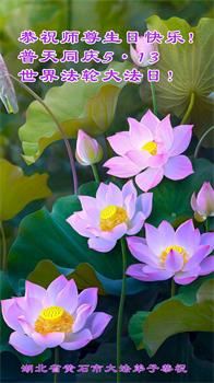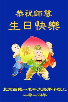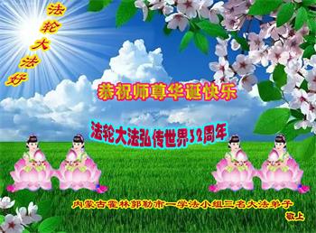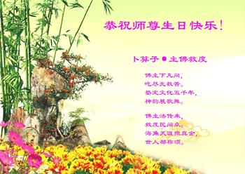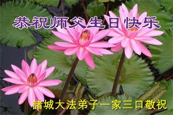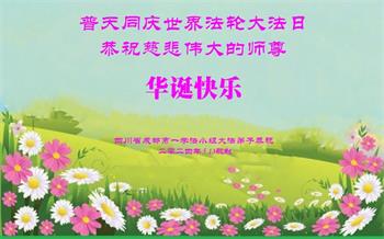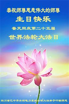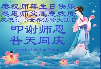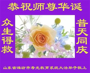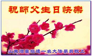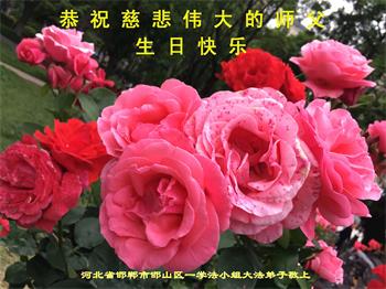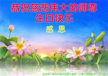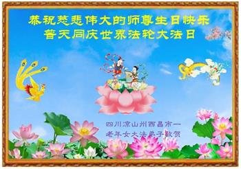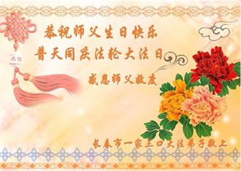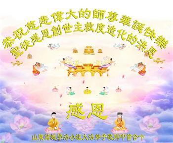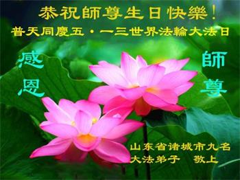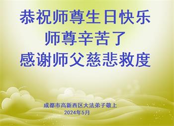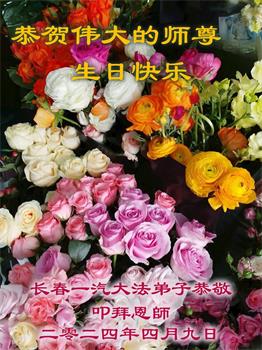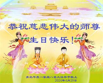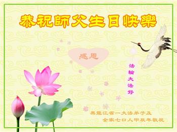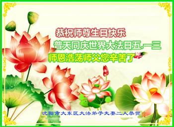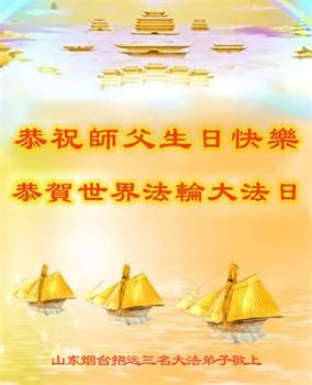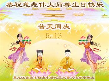 北京市一名硕士研究生说:“我就读于北京某师范院校,是一名即将毕业的硕士研究生。近日我陷入难关后,因为常念‘法轮大法好,真善忍好’,感受到大法赐予我智慧与力量!我深感师父的慈悲苦度。在此我深怀感恩之心,恭贺世界法轮大法日!恭祝大法师父生日快乐!”