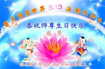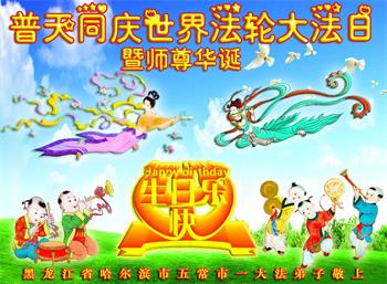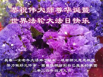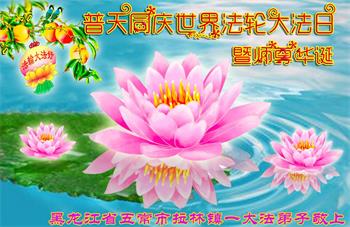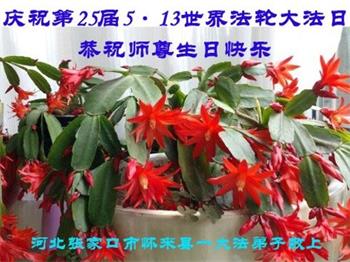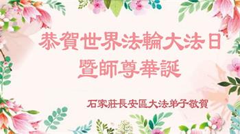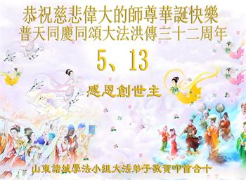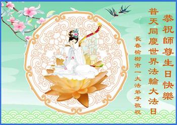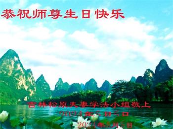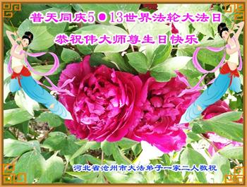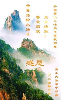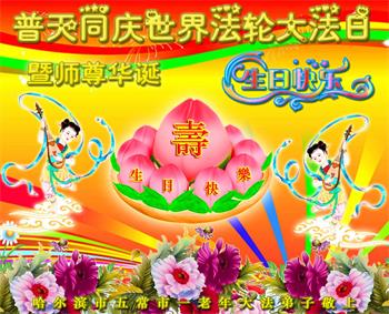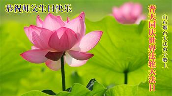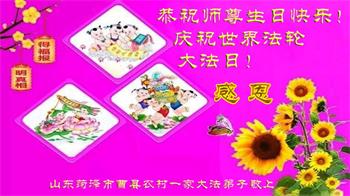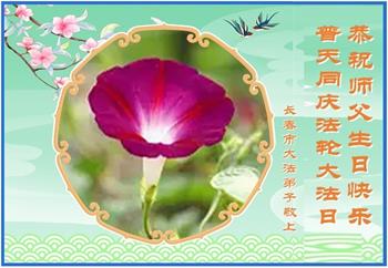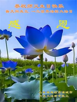 在此我深怀感恩之心,恭贺世界法轮大法日!恭祝大法师父生日快乐!
