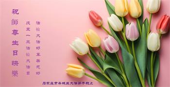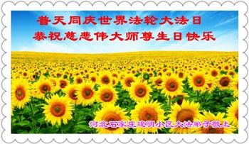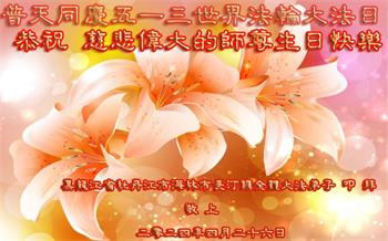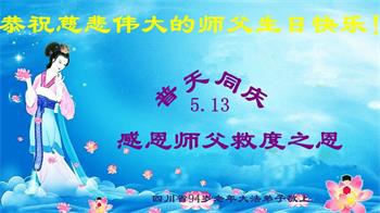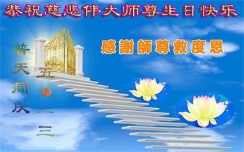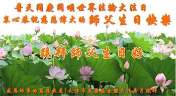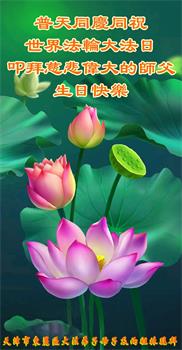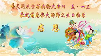 在世界法轮大法日到来之际,首先祝大法师父生日快乐!恭贺世界法轮大法日!