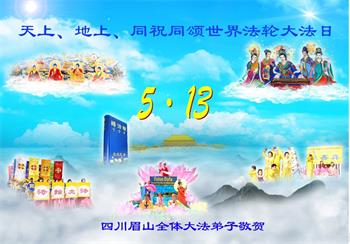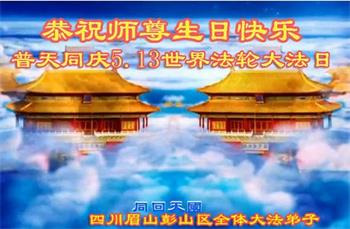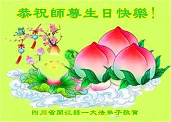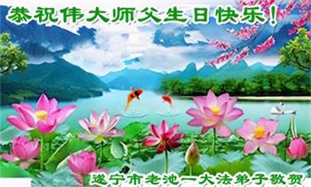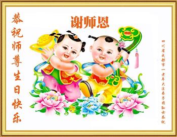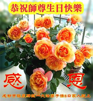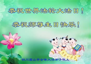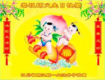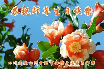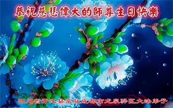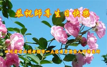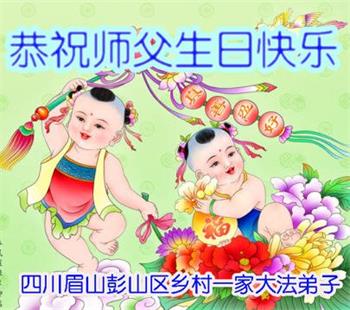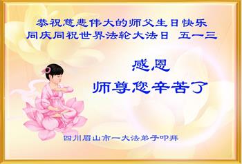 四川省眉山市一便利店全体明真相的员工敬祝伟大慈悲的李洪志大师生日快乐!您辛苦了,您传出的宇宙大法真、善、忍,教人做一个好人,让社会道德回升。我们店的全体员工向大师致以最崇高的敬意!向大师叩拜!