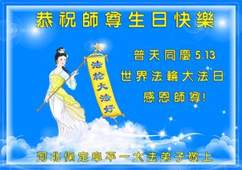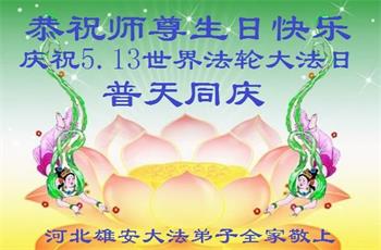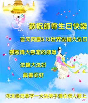 河北省保定市大法弟子家属恭祝慈悲伟大的师尊生日快乐!