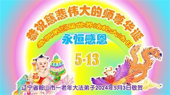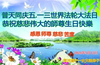 <英文版: https://en.minghui.org/html/articles/2024/5/11/217053.html>中国百姓祝贺世界法轮大法日 恭贺李大师华诞