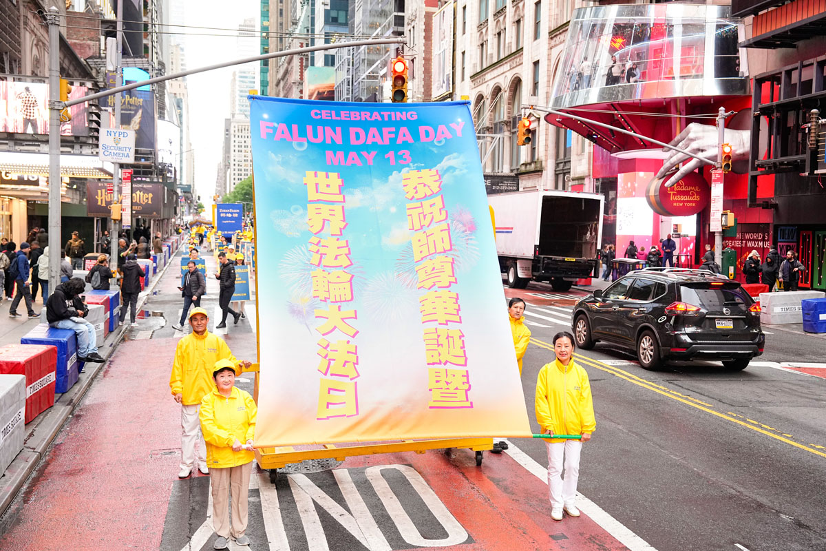 游行主办方、纽约法轮大法协会负责人易中原表示,“今天是大法洪传32周年,我们在曼哈顿整个42街举行盛大游行,向世人展示大法的美好和洪传的盛况,同时也表达我们对师父的感恩,恭贺师父生日快乐!”