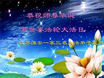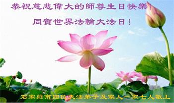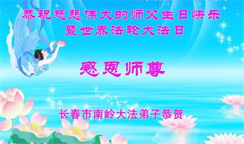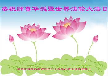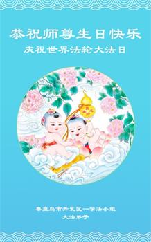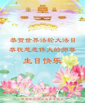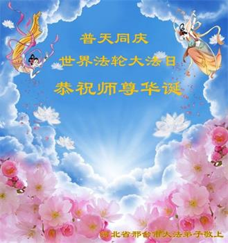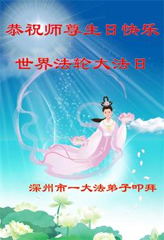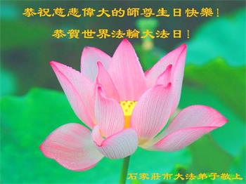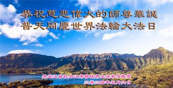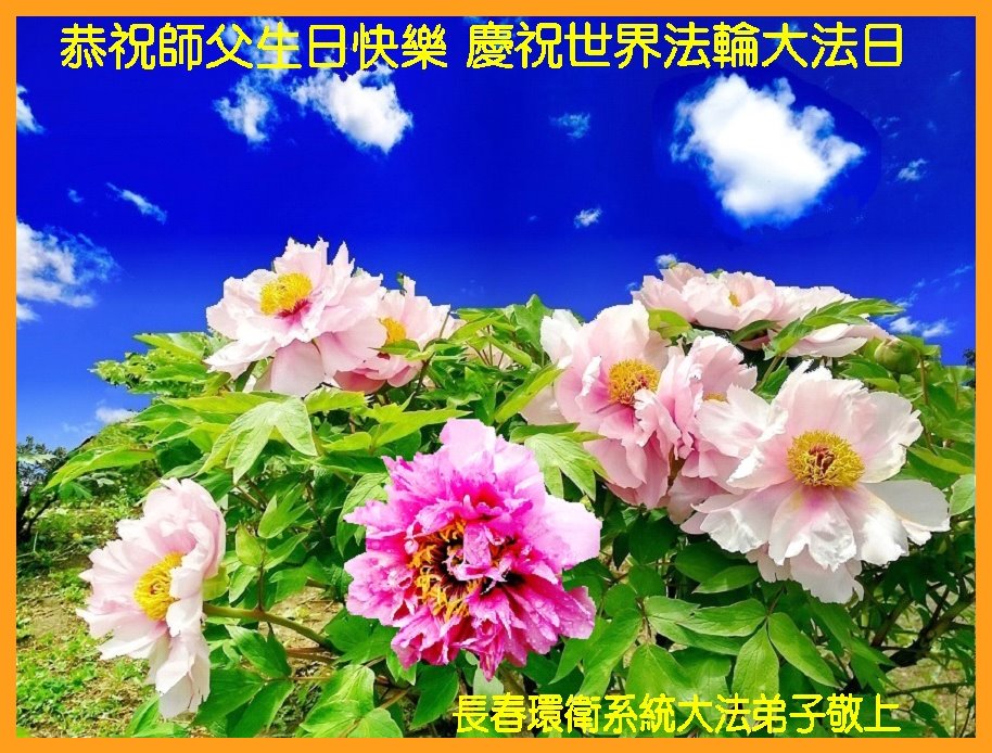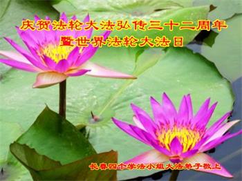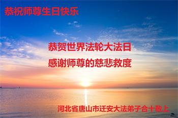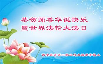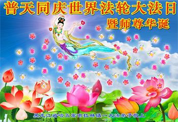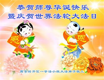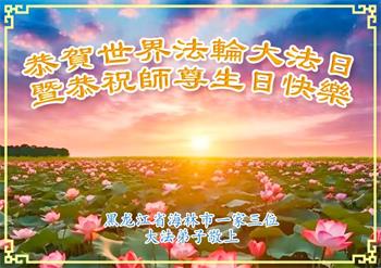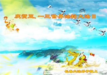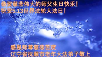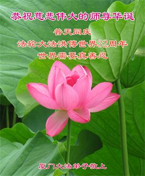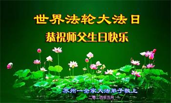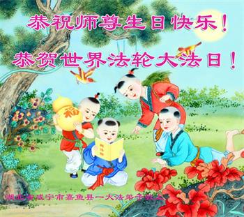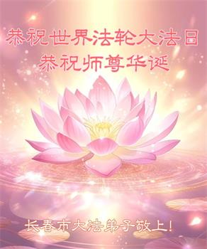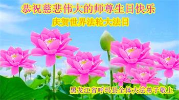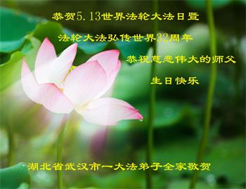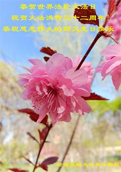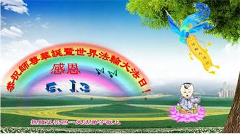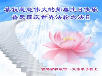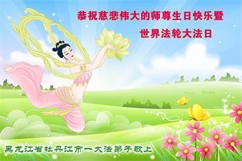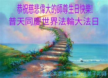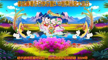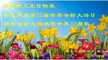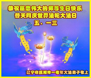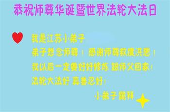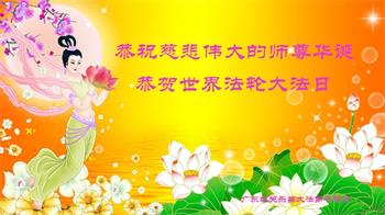弟子与全世界大法弟子同庆同颂世界法轮大法日!恭贺法轮大法洪传世间三十二年!恭祝慈悲伟大的师尊华诞快乐!感恩师尊慈悲苦度!师尊,您为大法弟子和众生操尽了心,您辛苦了!弟子叩拜师尊!