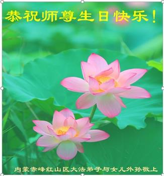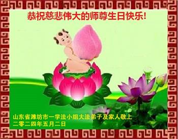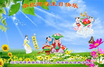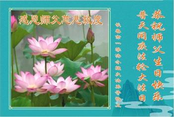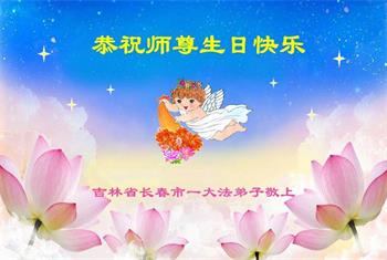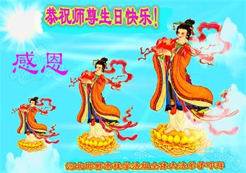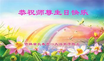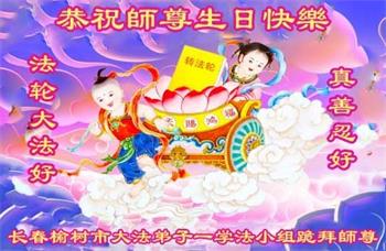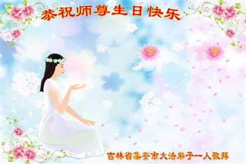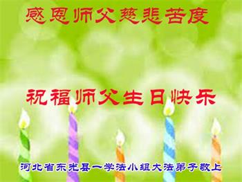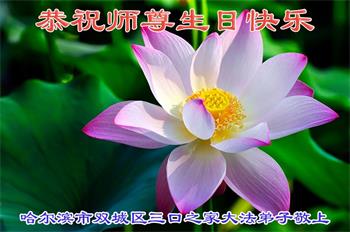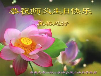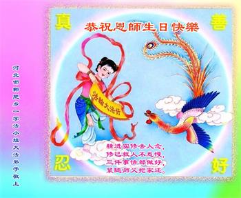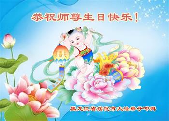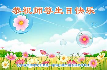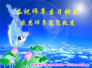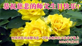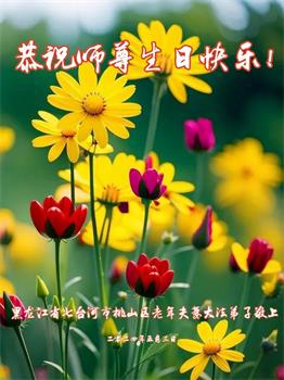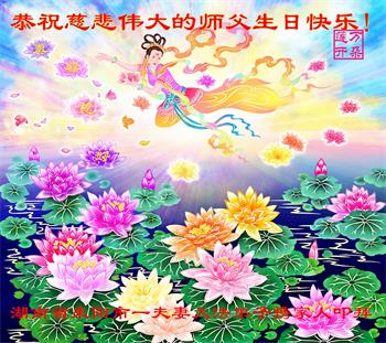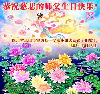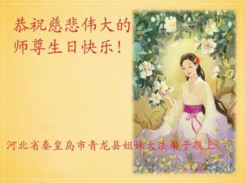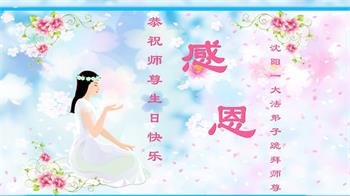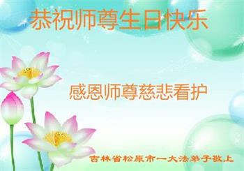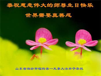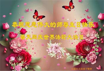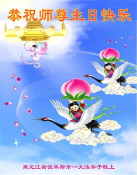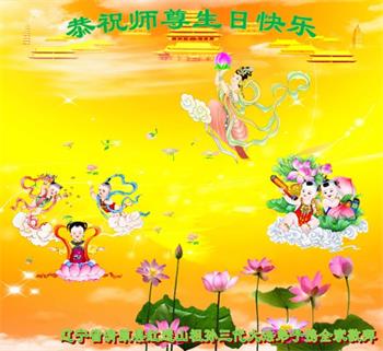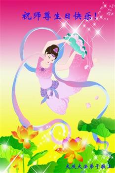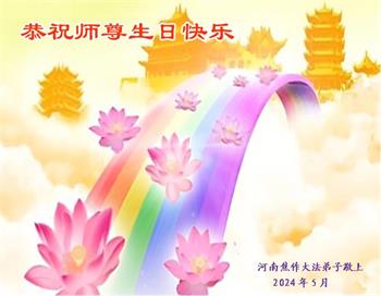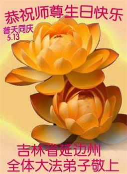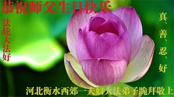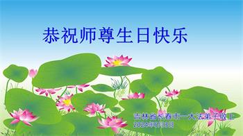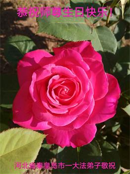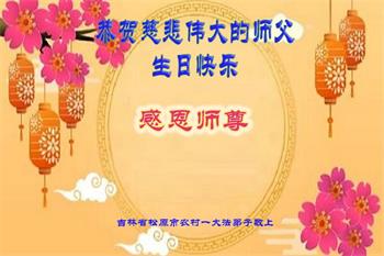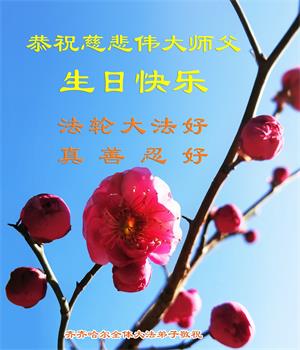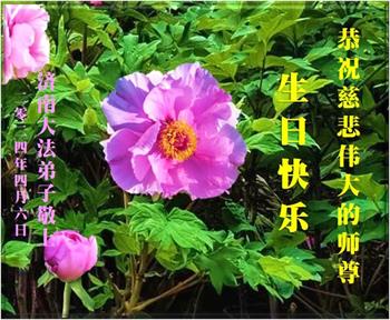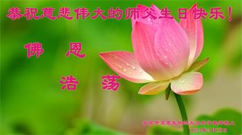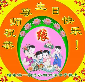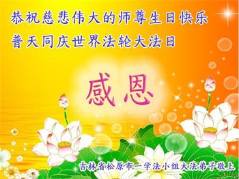 慈悲伟大的师父:祝您生日快乐!弟子非常感恩您引导我们走上了返本归真的修炼道路,给了我们健康的身体,使我们懂得了按真善忍做个好人。弟子一定牢记你的教导,修好自己,达到大法弟子圆满的标准,跟师父回家,这是我们最大的心愿!