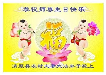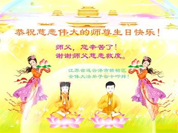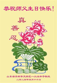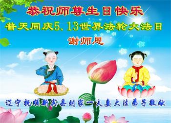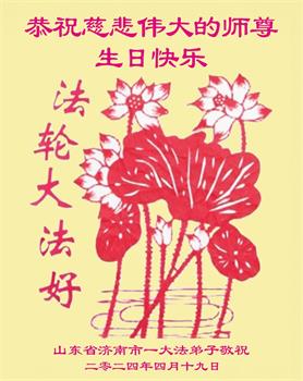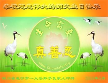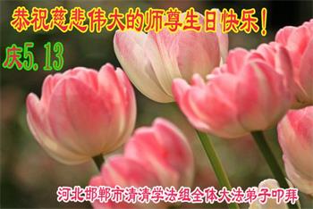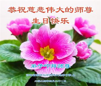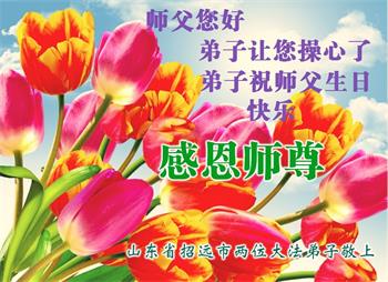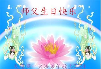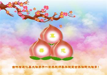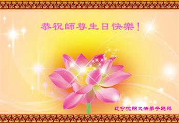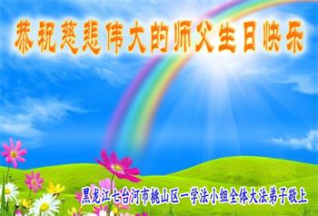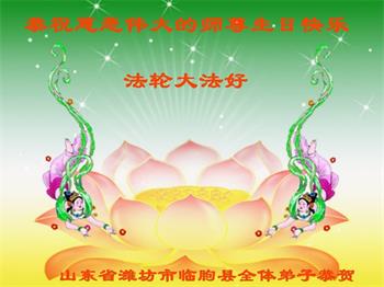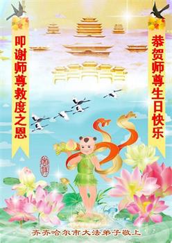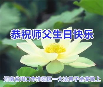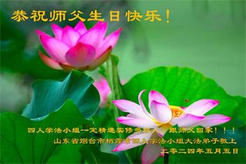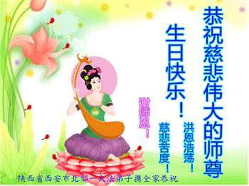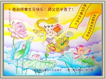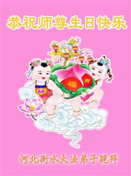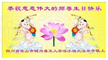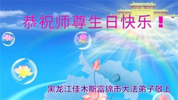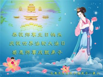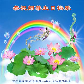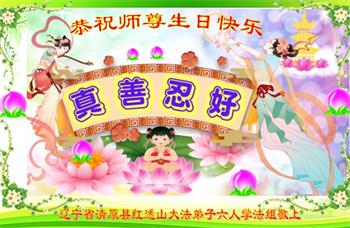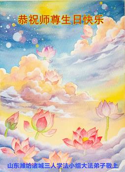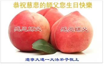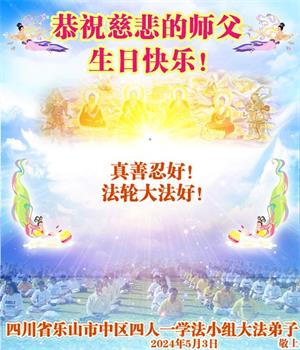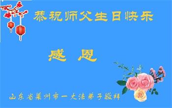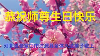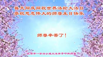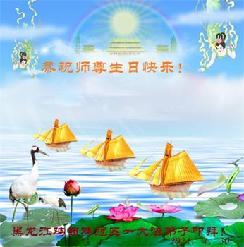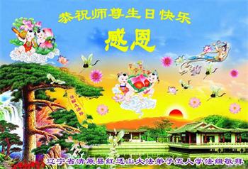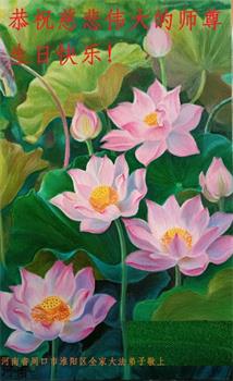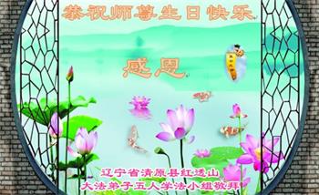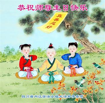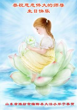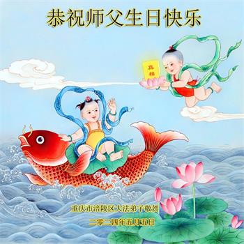 慈悲伟大的师父:祝您生日快乐!弟子非常感恩您引导我们走上了返本归真的修炼道路,给了我们健康的身体,使我们懂得了按真善忍做个好人。弟子一定牢记你的教导,修好自己,达到大法弟子圆满的标准,跟师父回家,这是我们最大的心愿!