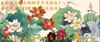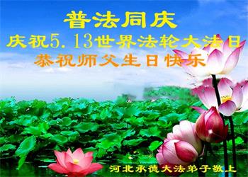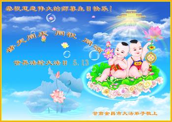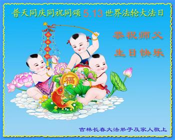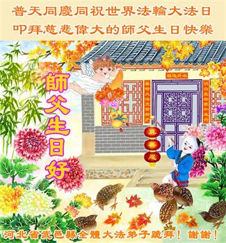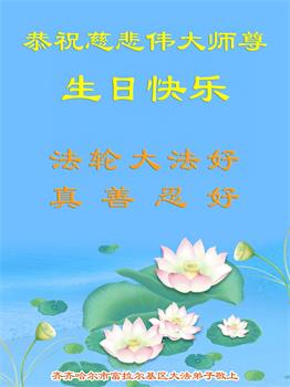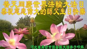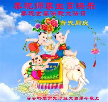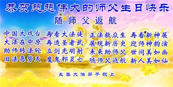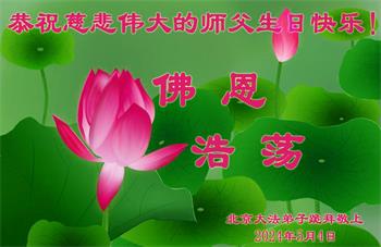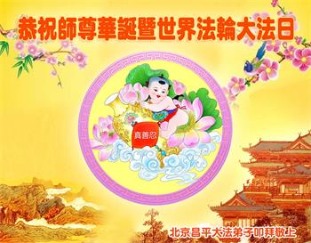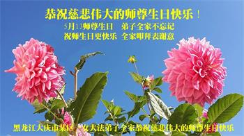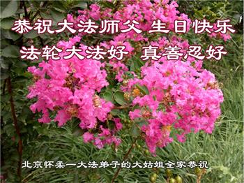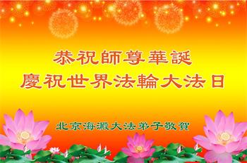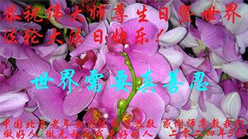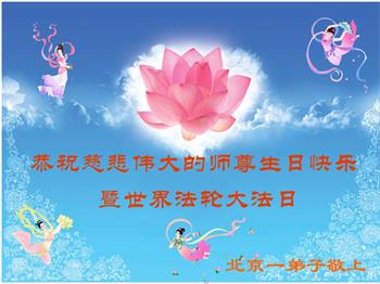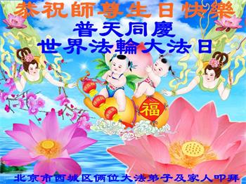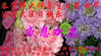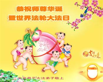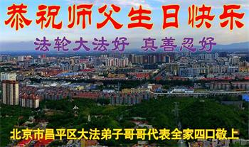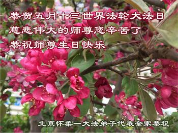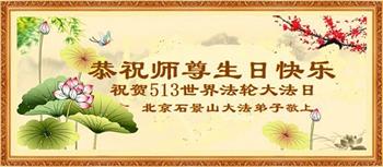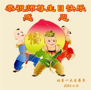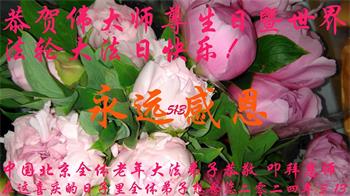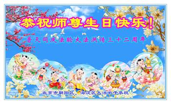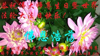 在普天同庆世界法轮大法日之际,北京大法弟子恭祝师父生日快乐!愿师父不再辛苦,愿弟子精進觉悟,愿世人早日得度。