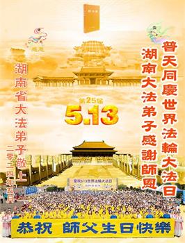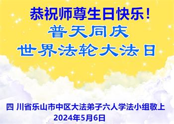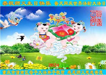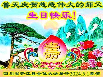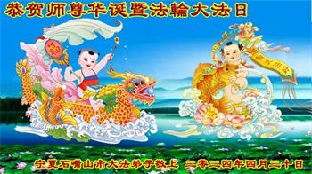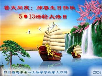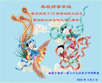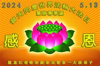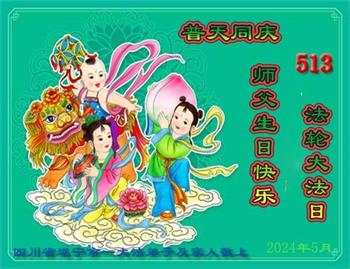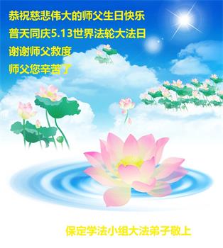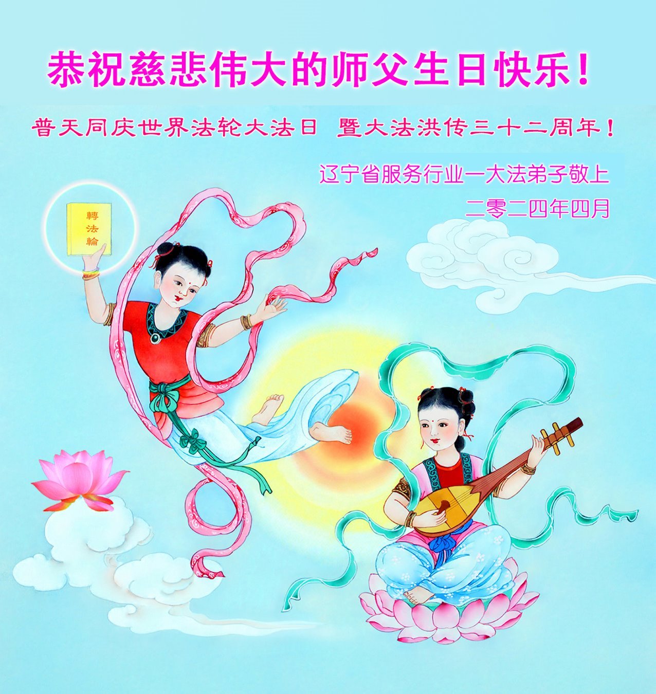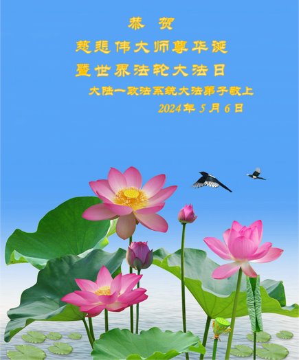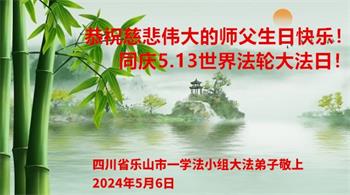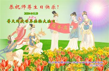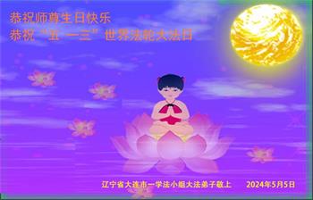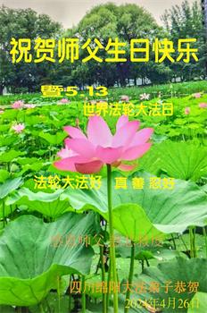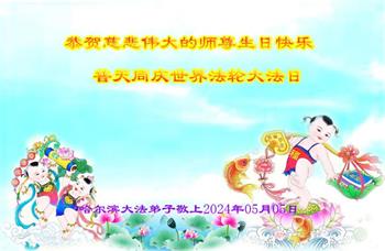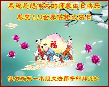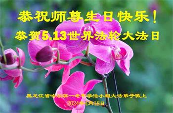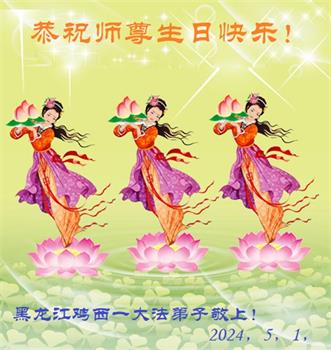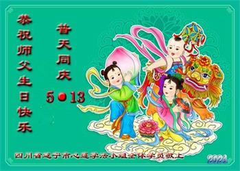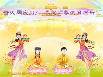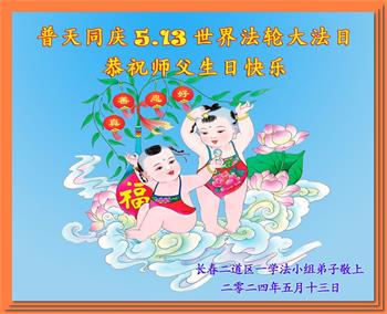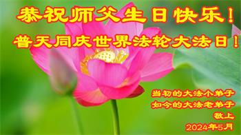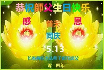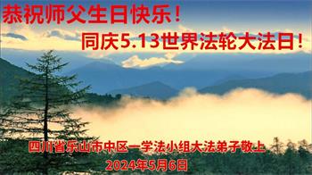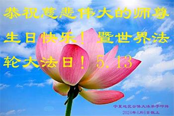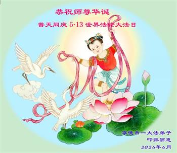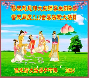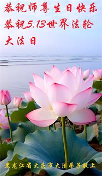 二零二四年五月十三日,是师父传法三十二周年,也是第二十五届世界法轮大法日,也是李洪志师尊七十三岁华诞。在这宇宙中最伟大最辉煌的日子,工作在各个行业的中国大陆法轮大法弟子们,隔岸遥拜恩师生日快乐!感念师尊的慈悲救度!