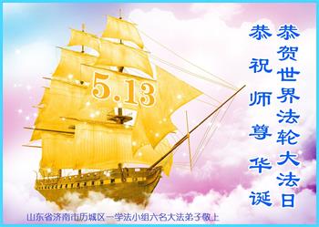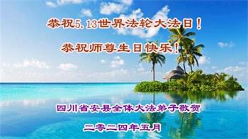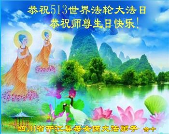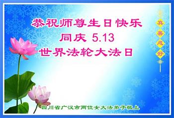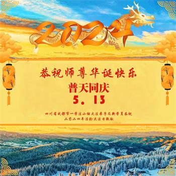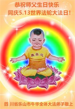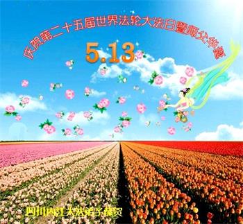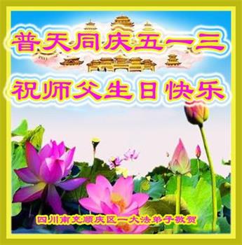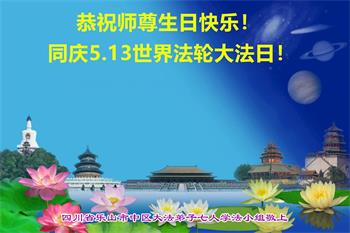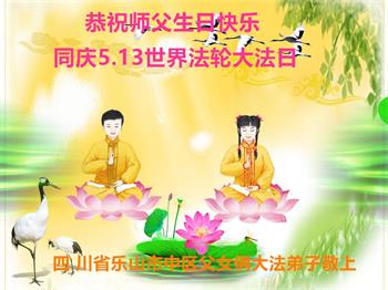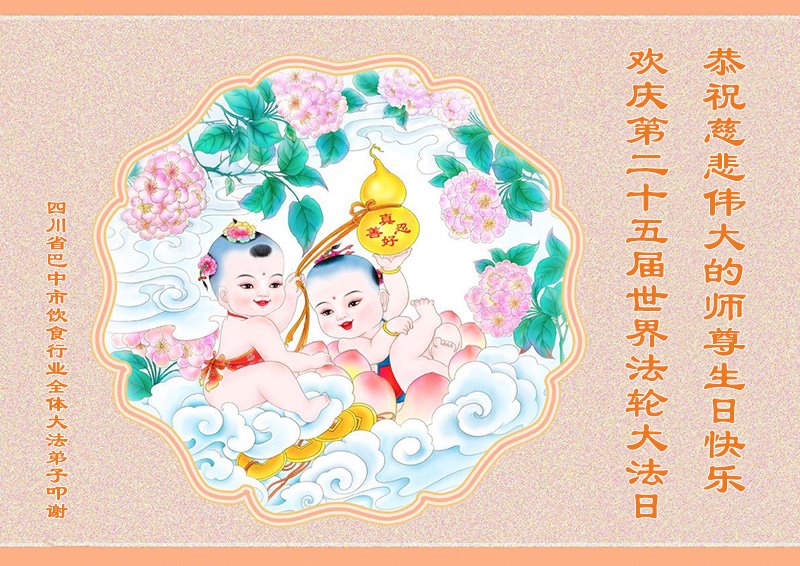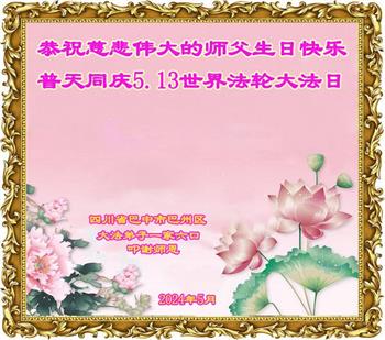 又是一年一度的五一三世界法轮大法日到来了。这是宇宙最伟大最辉煌的日子!值此普天同庆世界法轮大法日之际,我们四川省巴中市饮食行业大法弟子恭祝师尊华诞!叩谢师恩!