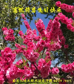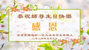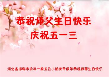 弟子向伟大师尊问好,祝师父生日快乐!我们想念您,盼望师父早日回大陆,我们不知道用什么语言能表达我的心情,只有听师父的话,做好三件事,谢谢师父。