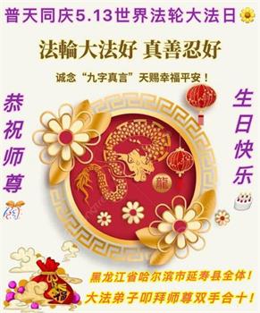 黑龙江哈尔滨市宾县交通系统大法弟子及家人恭祝师尊生日快乐!庆祝世界法轮大法日!
