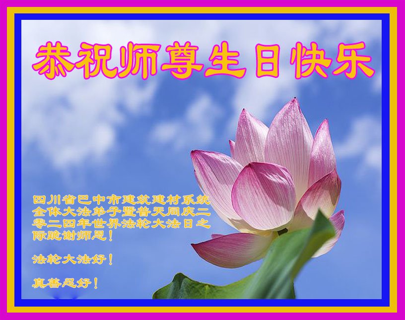 值此普天同庆二零二四年世界法轮大法日之际,四川省巴中市建筑建材系统全体大法弟子暨普天同庆二零二四年世界法轮大法日之际跪谢师恩!
