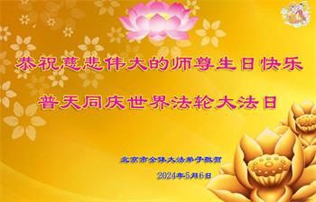 <英文版: https://en.minghui.org/html/articles/2024/5/12/217267.html>北京大法弟子恭贺世界法轮大法日暨师尊华诞(22条)