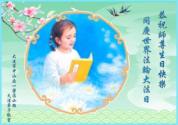 大法洪传世界32周年之际,中国大陆河北、北京、黑龙江、江苏、山东、辽宁、上海等地的大法小弟子恭贺世界法轮大法日暨师尊华诞!