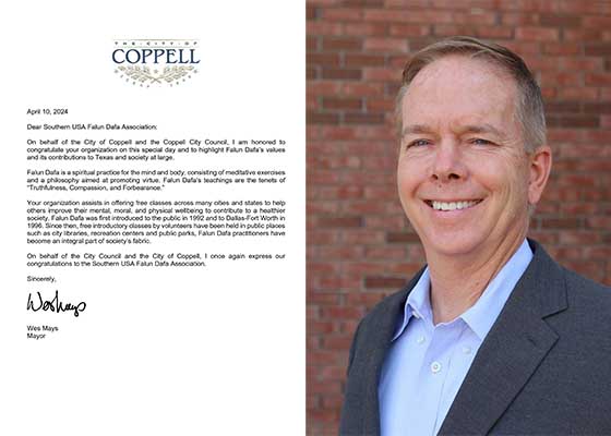 美国德克萨斯州达拉斯地区已有七个城市宣布“法轮大法日”,当地三个城市的市长给美南大法学会发来了贺信,赞扬法轮功学员给社区的贡献。