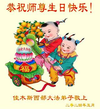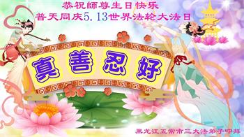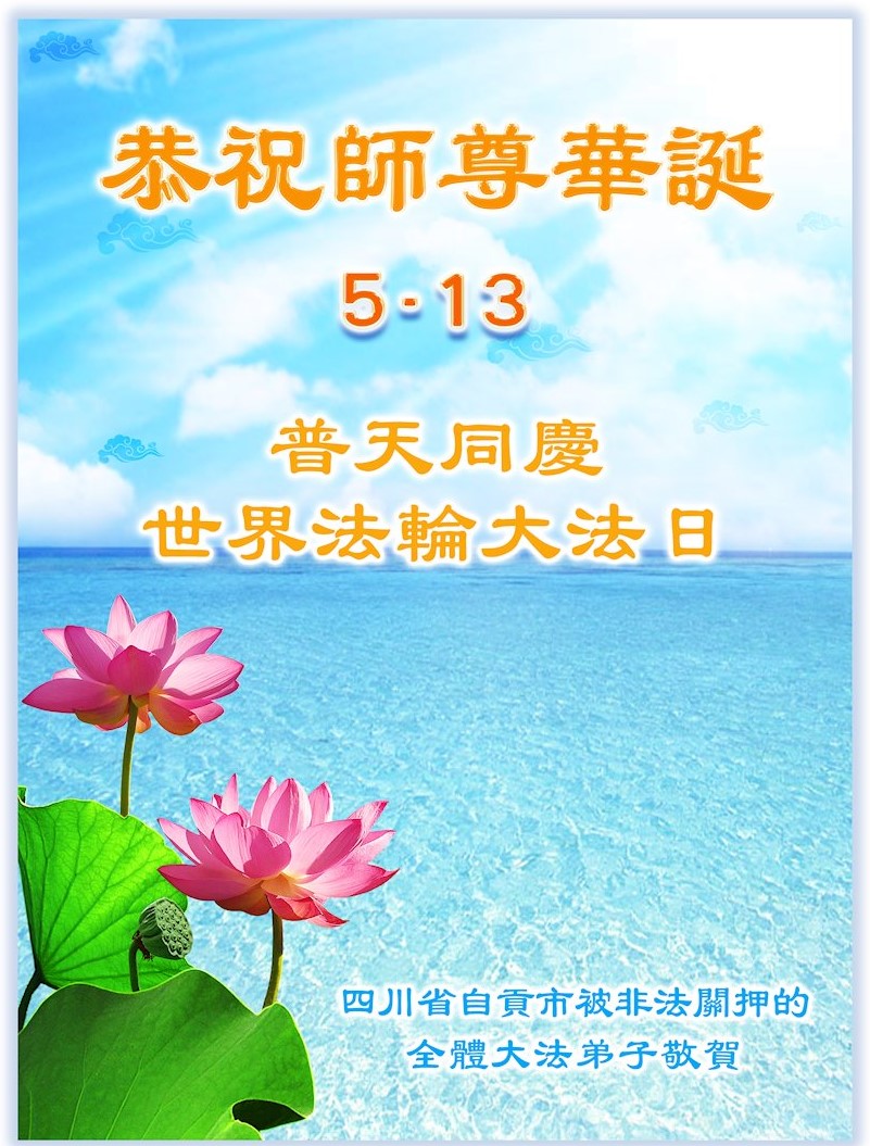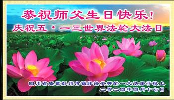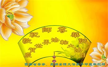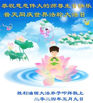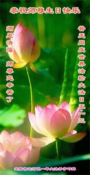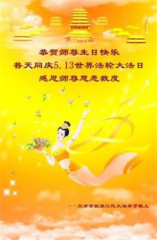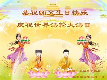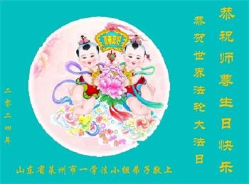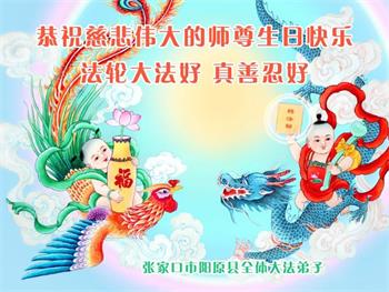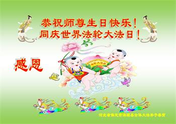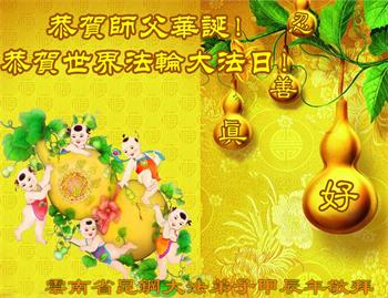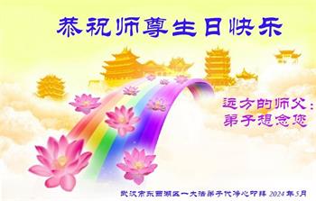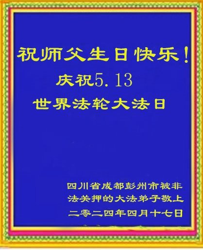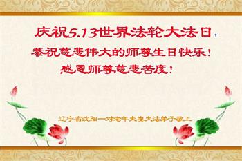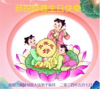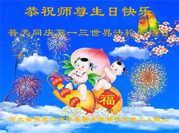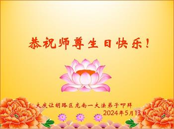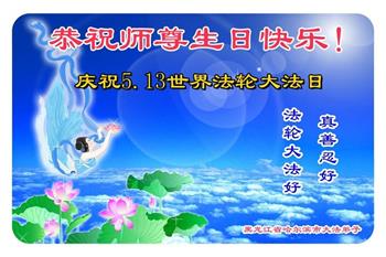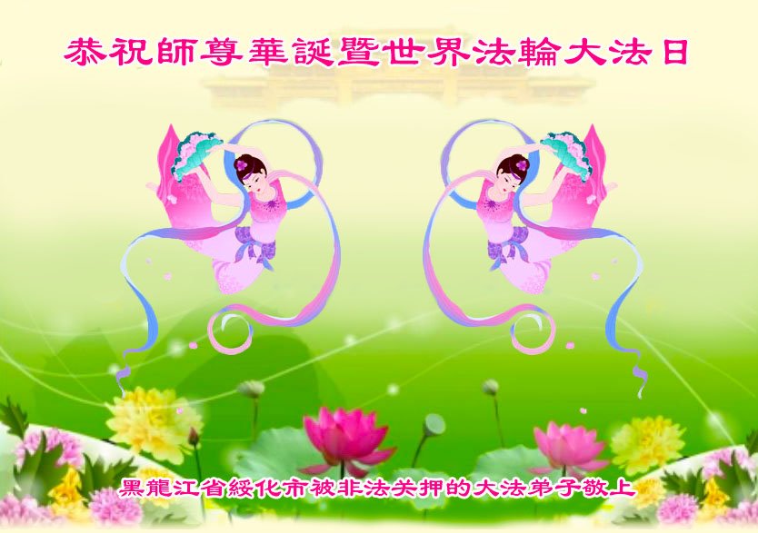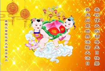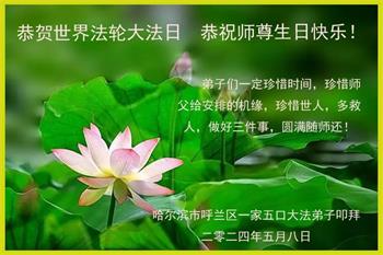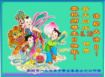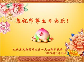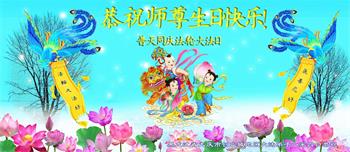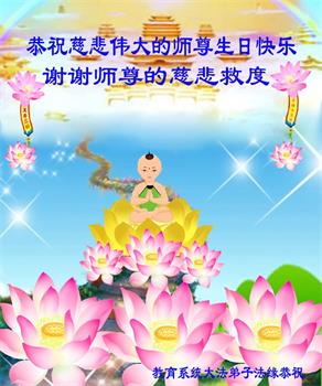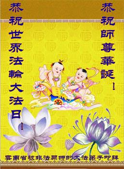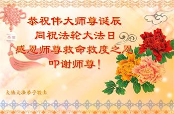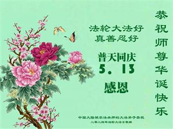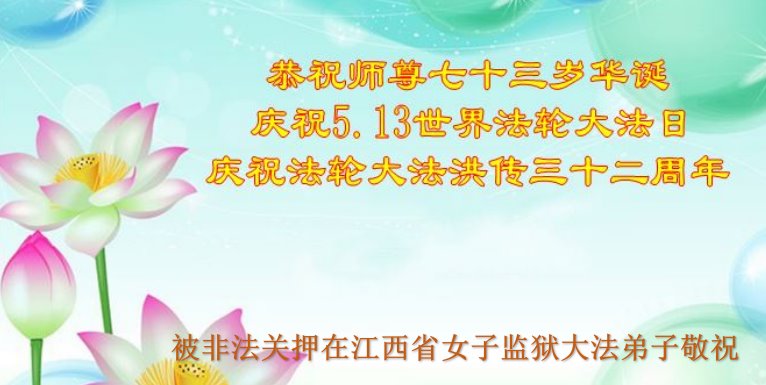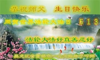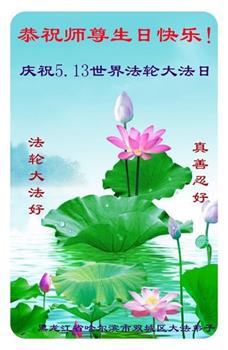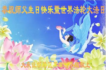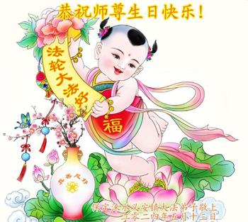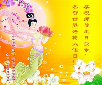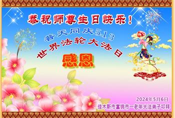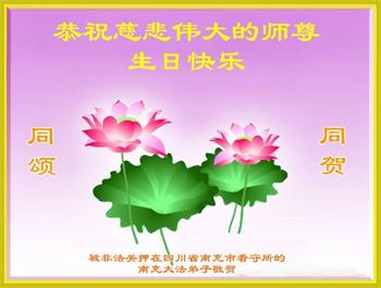 以下是部份被非法关押的中国大陆大法弟子发来的贺词庆祝师父华诞暨世界法轮大法日。