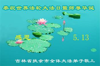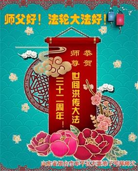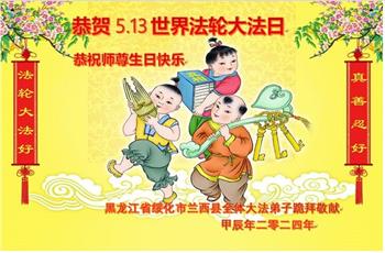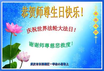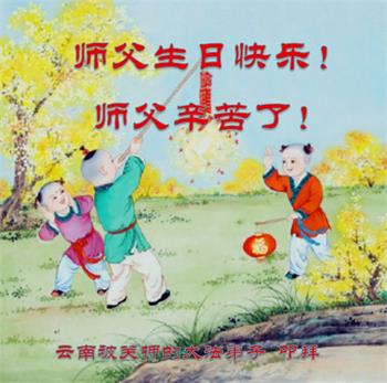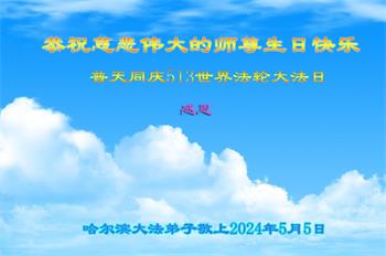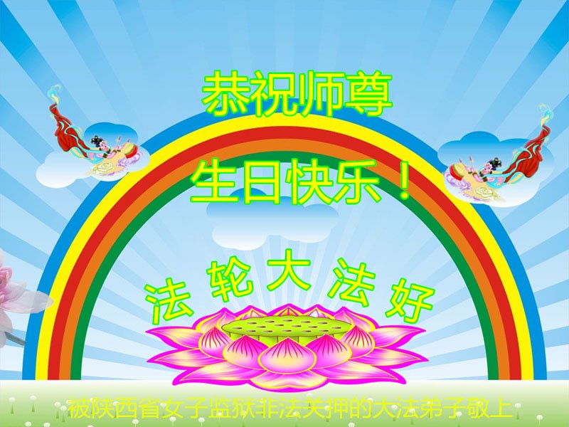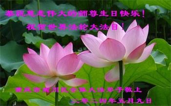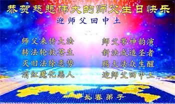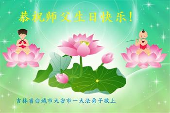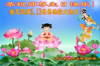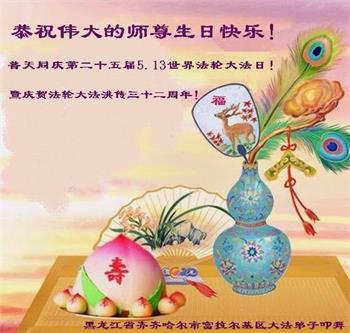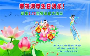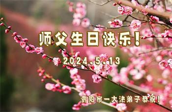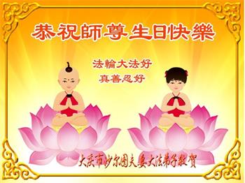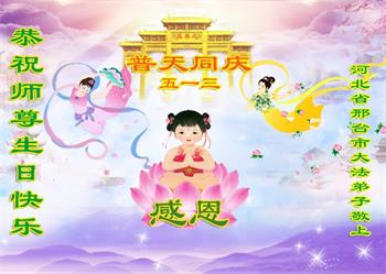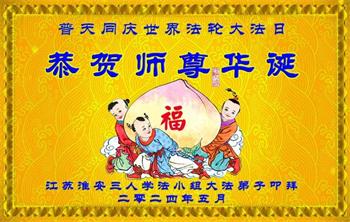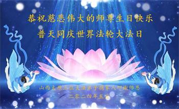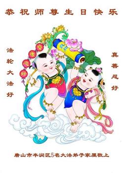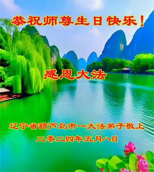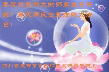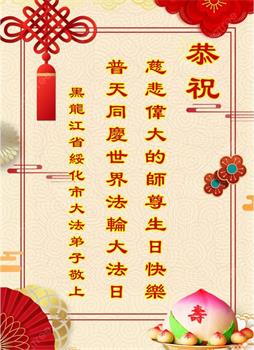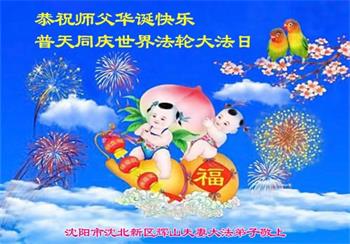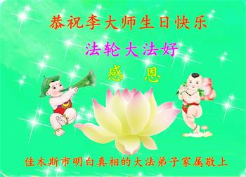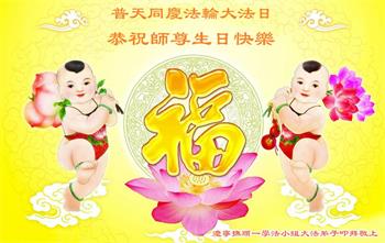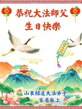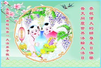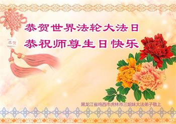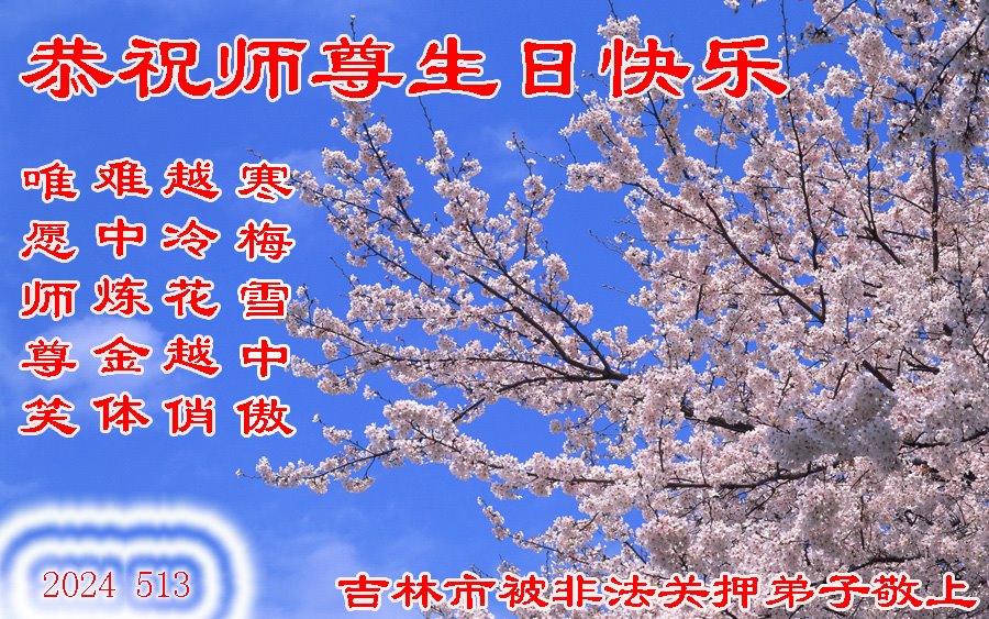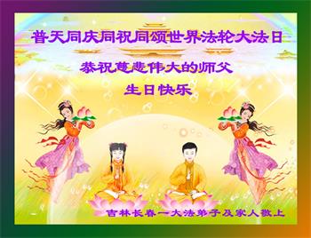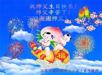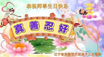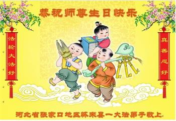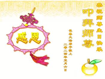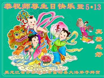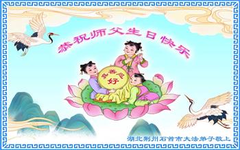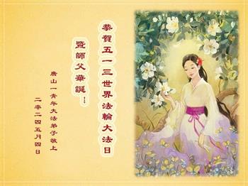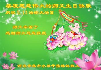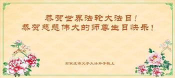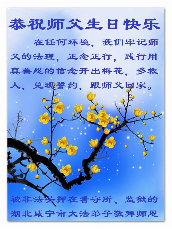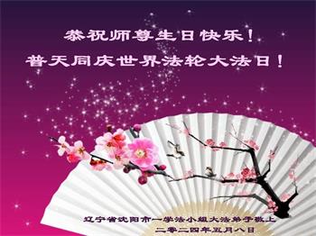 以下是部份被非法关押的中国大陆大法弟子发来的贺词庆祝师父华诞暨世界法轮大法日。