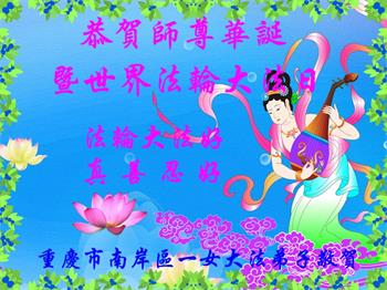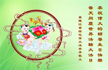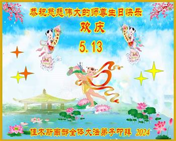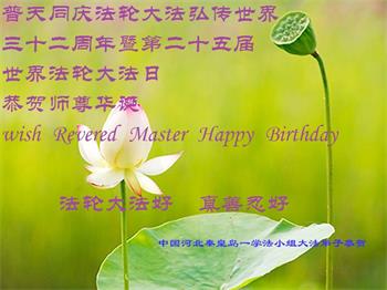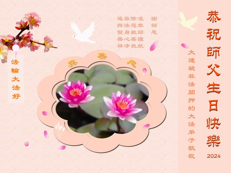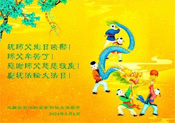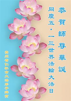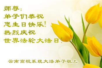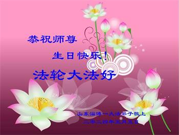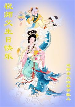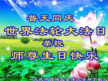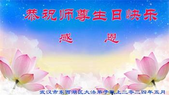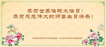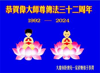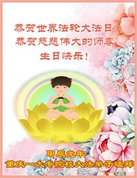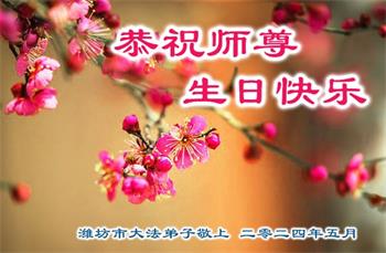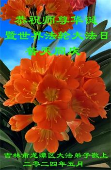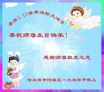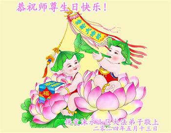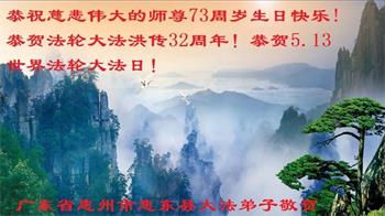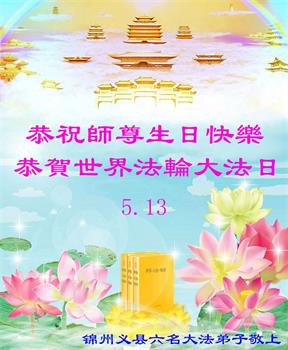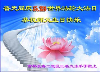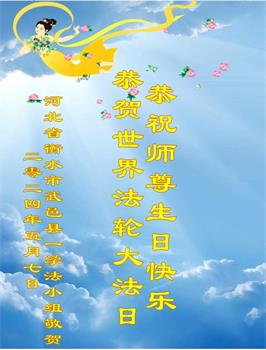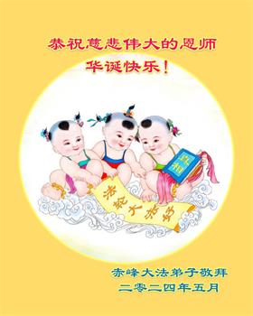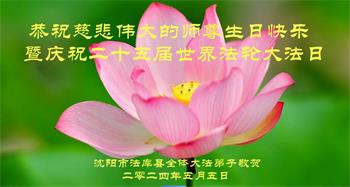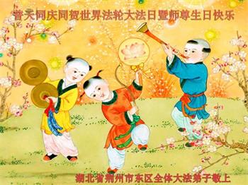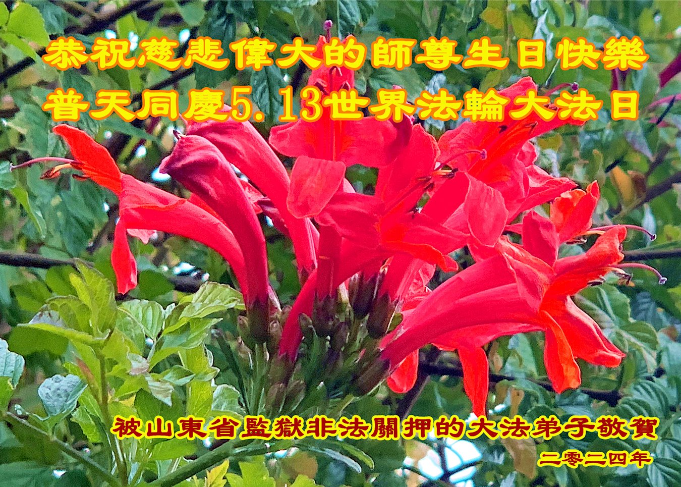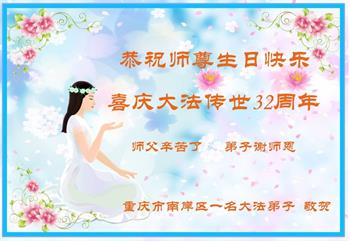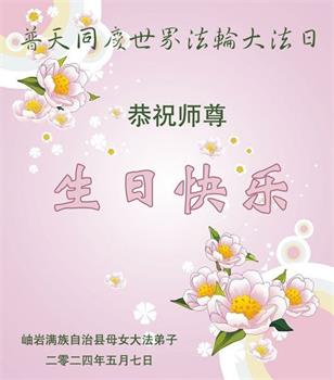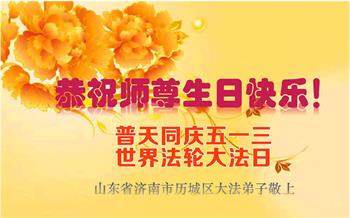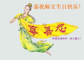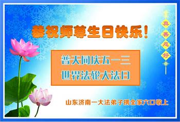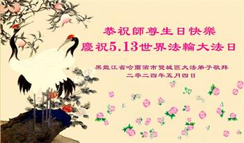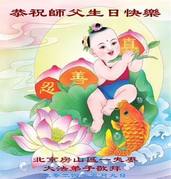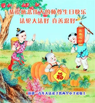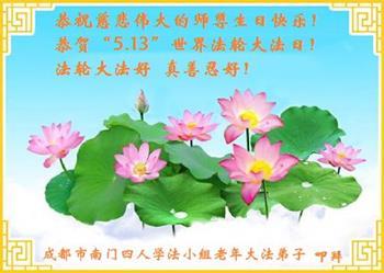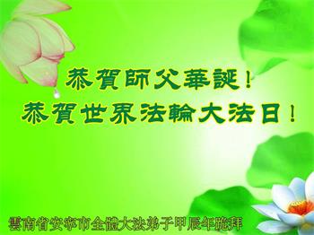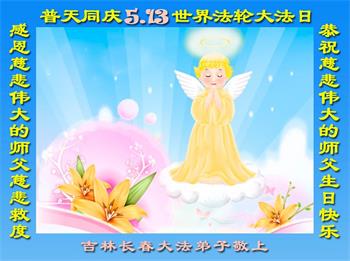 以下是部份被非法关押的中国大陆大法弟子发来的贺词庆祝师父华诞暨世界法轮大法日。