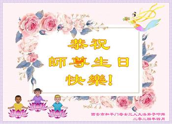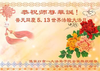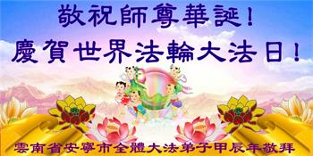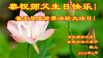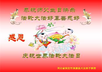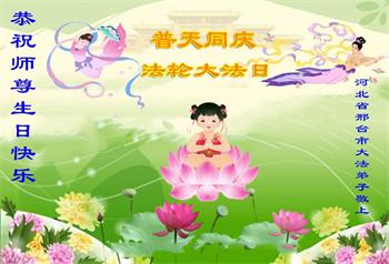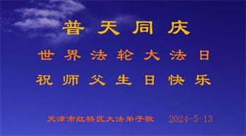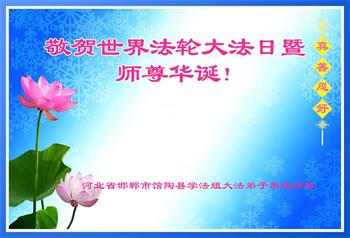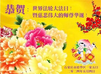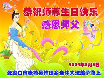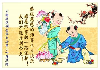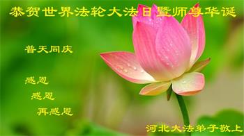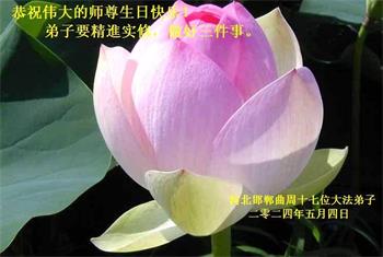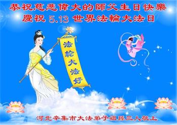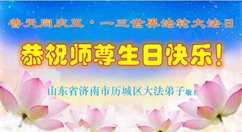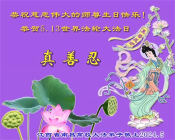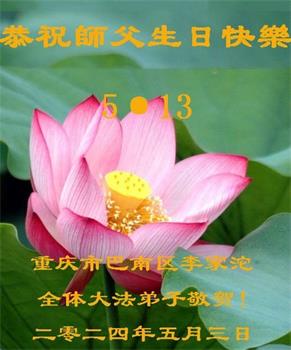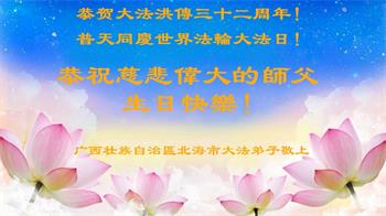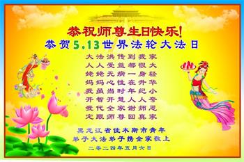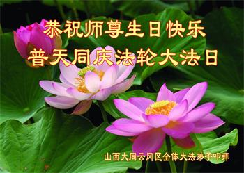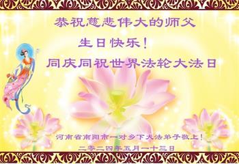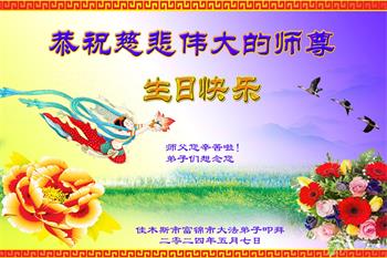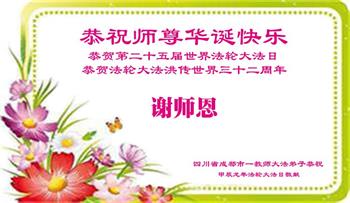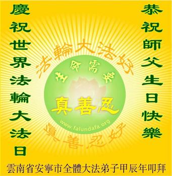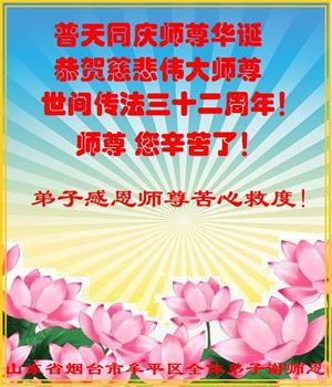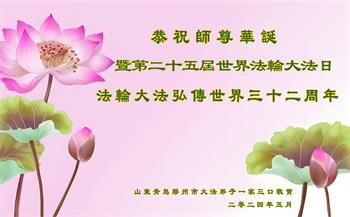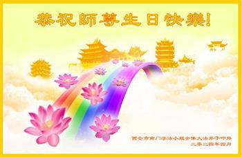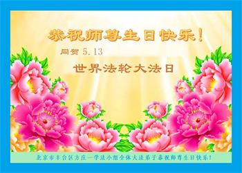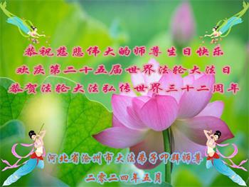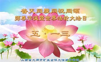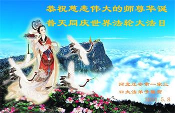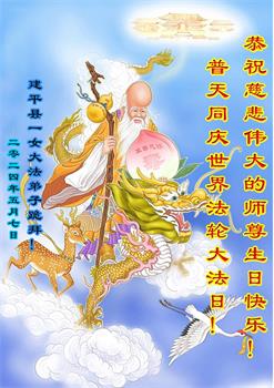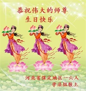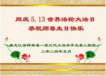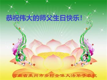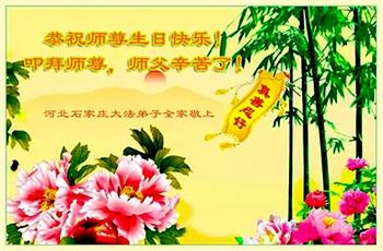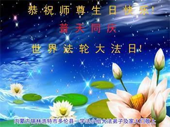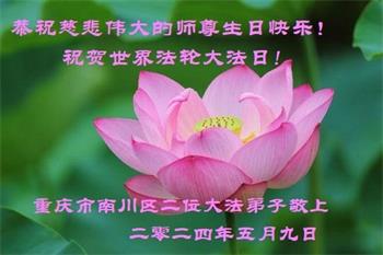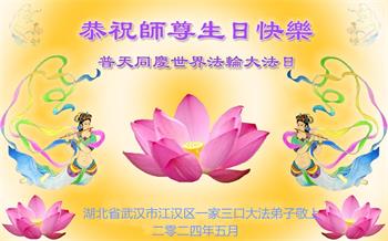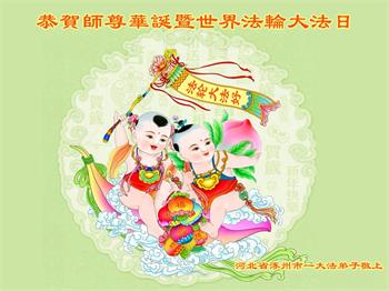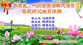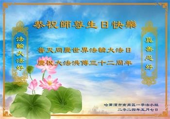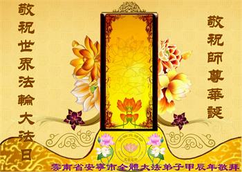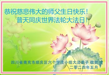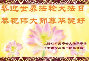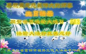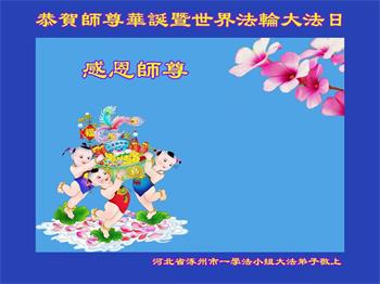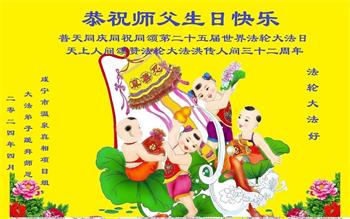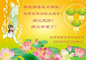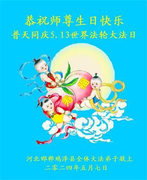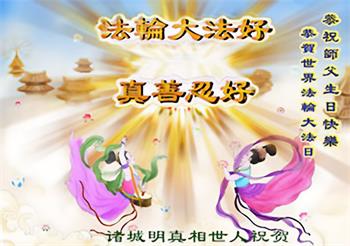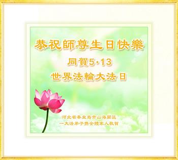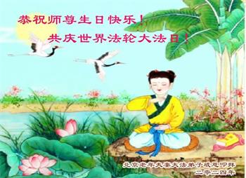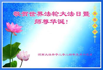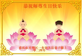 以下是部份被非法关押的中国大陆大法弟子发来的贺词庆祝师父华诞暨世界法轮大法日。