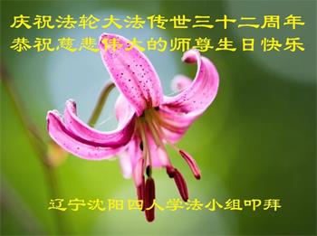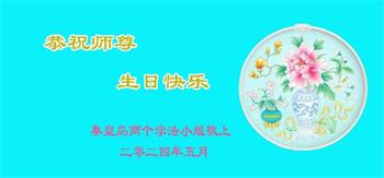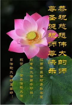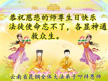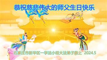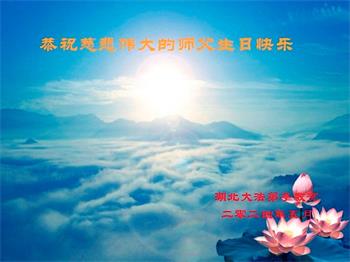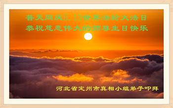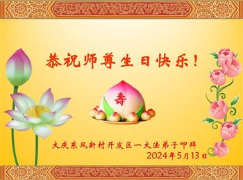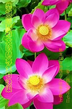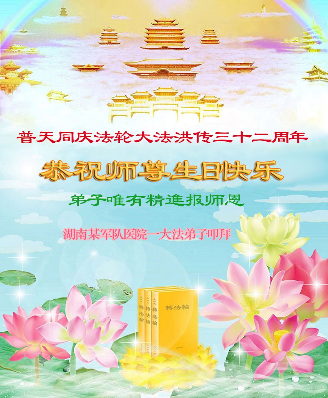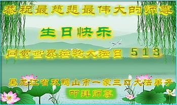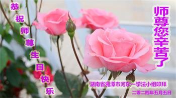 我是一名新学员,得法三个多月。我在体制内工作多年,受(邪党)毒害颇深。通过学法,让我对宇宙对生命对邪恶有了从新认识,震撼于大法之精深博大,感怀于师尊之思想伟力!遥祝师尊生日快乐!