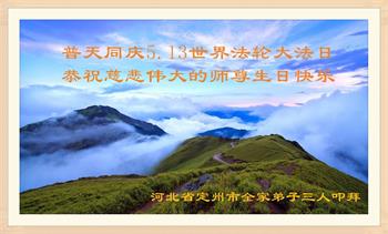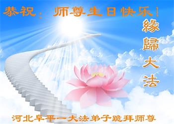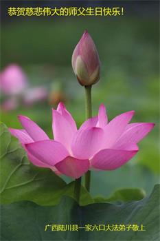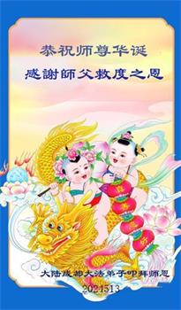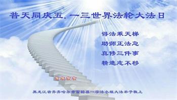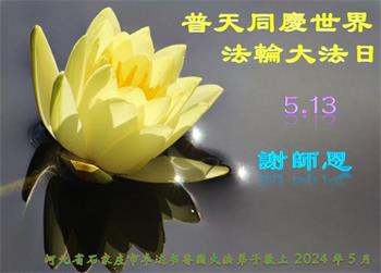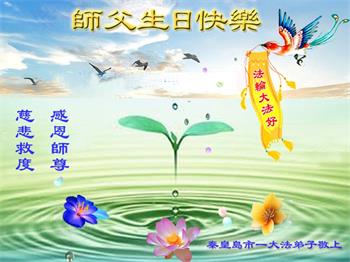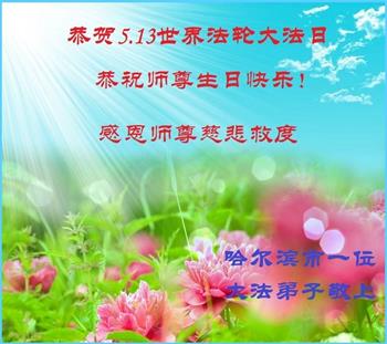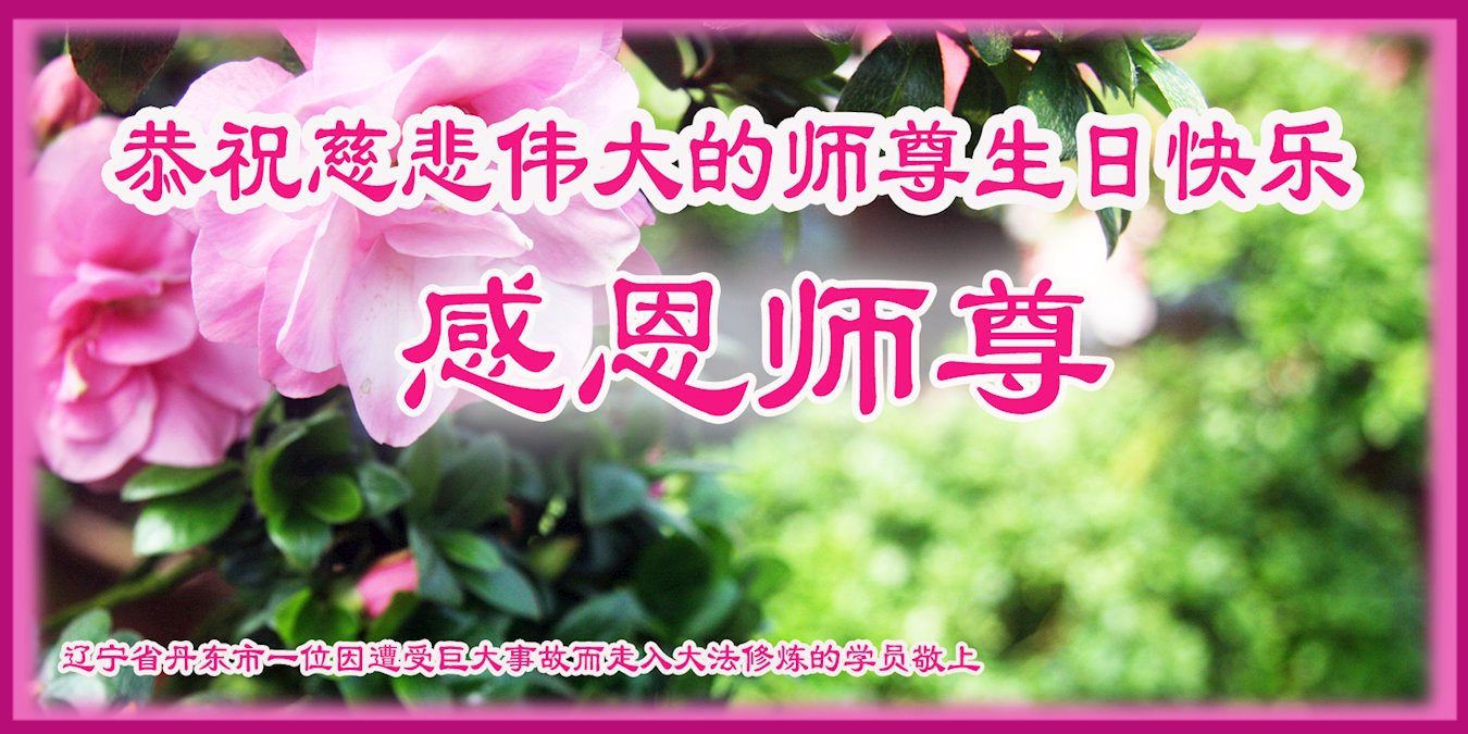 我是学法不久的新学员。得法前,在一次重大的事故中,是师父救了我的命,给了我第二次生命,在师父七十三岁华诞暨“五一三”世界法轮大法日之际,我怀着感恩的心,虔诚的向师父问一声:“师父好!”我一定听您的话,做您的真修弟子,跟师父回家。谢谢师父!