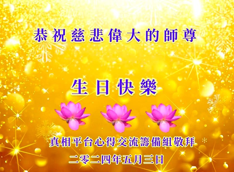 真相平台心得交流筹备组大法弟子恭祝师尊生日快乐!法语明慧网全体大法弟子恭祝伟大的师尊生日快乐!